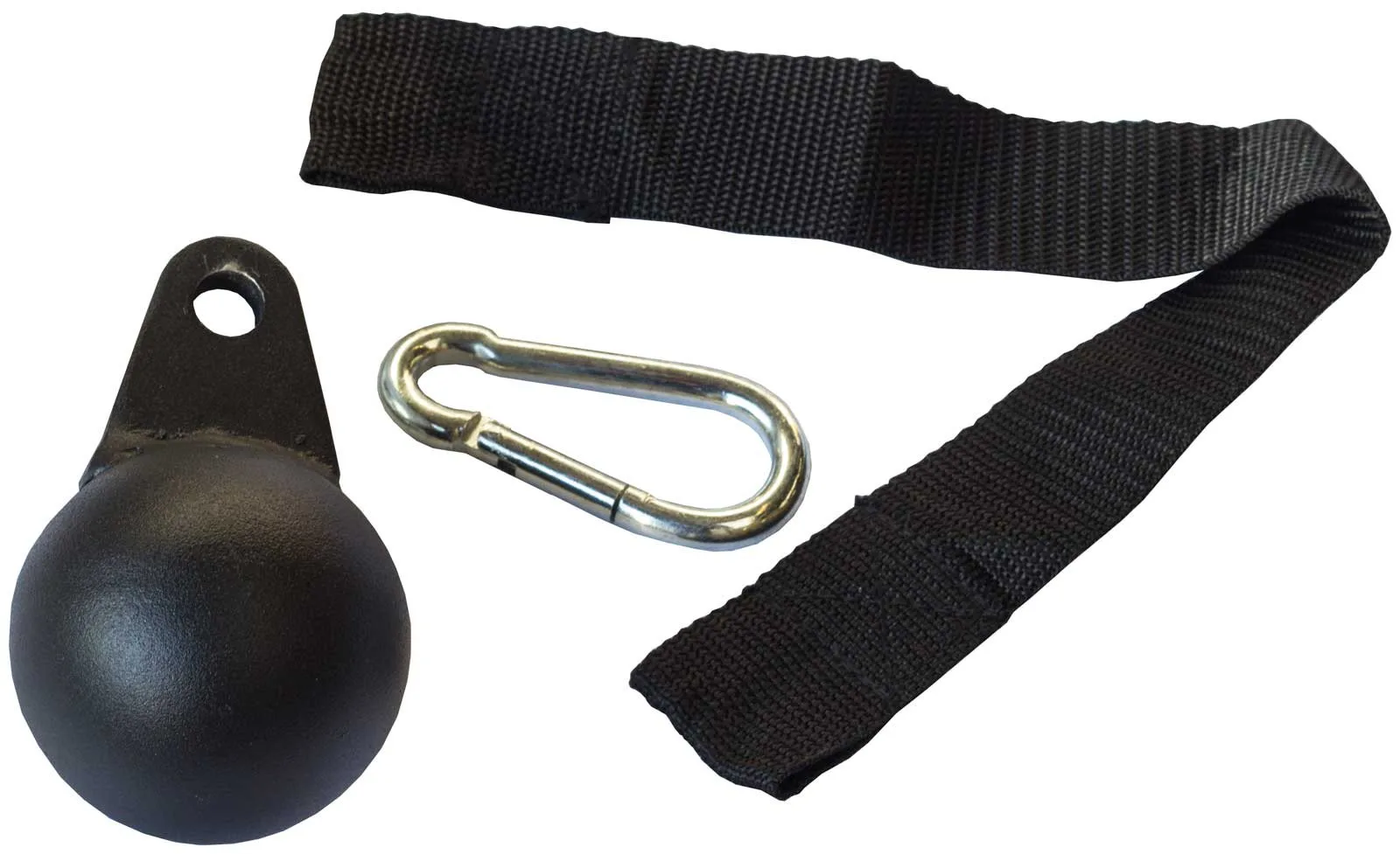 STRENGTHSYSTEM GRIP BALL je jednoruční adaptér, ideální pro posílení paží, zápěstí a především pro zvýšení síly úchopu. Adaptér se skládá z kovové koule s navařeným úchytem a dodává se s karabinou a popruhem délky 37 cm. Kovová koule má průměr 67 mm a skvěle padne do ruky.