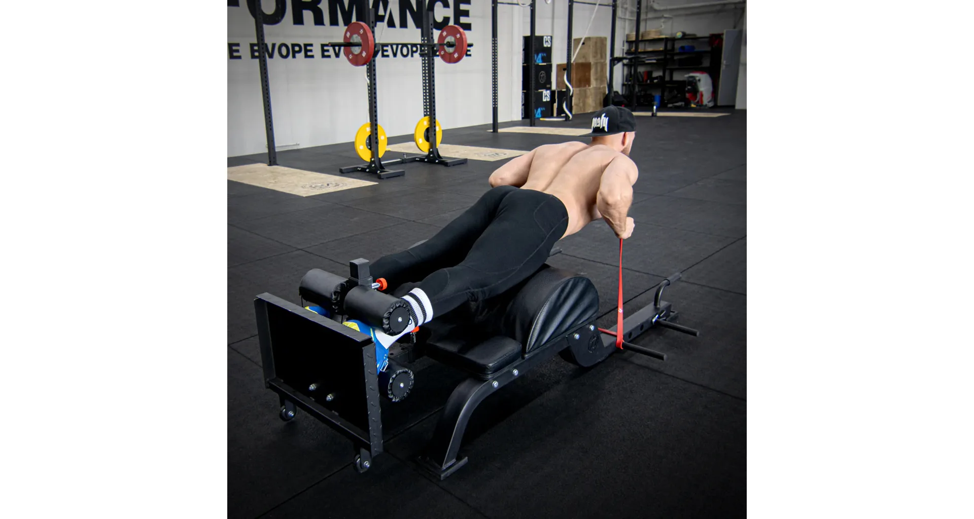 STRENGTHSYSTEM Glute Ham Developer/Hip Thrust je ideální stroj pro procvičování hýžďových svalů, hamstringů, lýtkových svalů, zádového a břišního svalstva a k procvičování kolenních a kyčelních kloubů.Stroj kombinuje sekci pro hip thrusty a sekci pro posilování hamstringů. Kompaktní design je ideální pro jakoukoli komerční nebo domácí posilovnu, která má omezený prostor. Stroj se snadno přepravuje pomocí rukojetí a koleček.Hip thrusty jsou široce používány ke zlepšení a budování síly hýžďového svalu, díky trnům pro odporové gumy můžete jednoduše zvýšit náročnost cvičení.