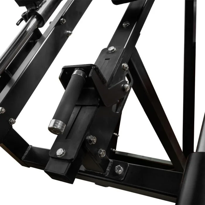 Stabilní konstrukce nabízí 4 nakládací trny a díky tomu je uživatel schopen rychle a snadno naložit požadovanou váhu i do velmi vysoké hmotnosti. Leg press má nosnost až 500 Kg. Další 4 trny slouží k odkládání kotoučů.
