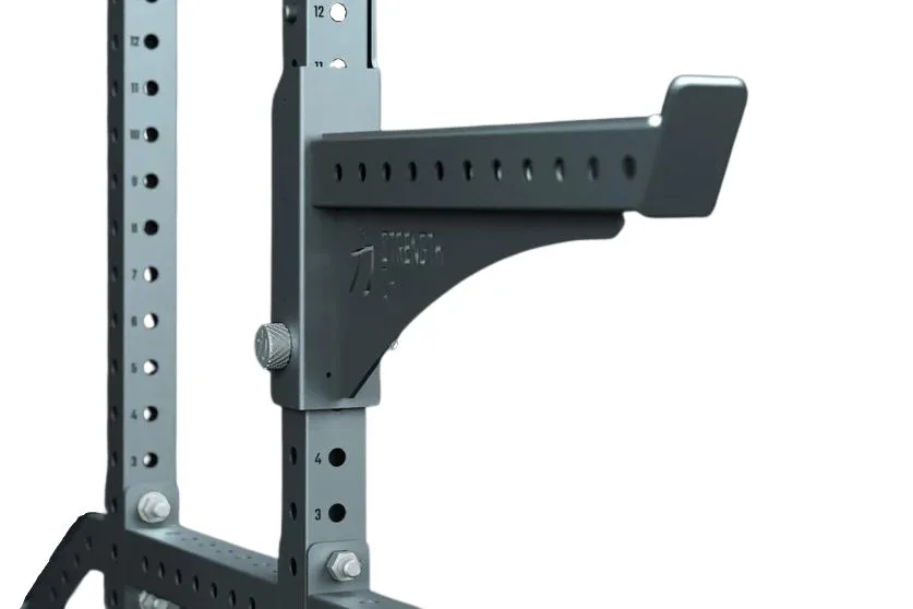 Variabilita a přizpůsobení tréninku – Klec disponuje 28 použitelnými otvroy s vnitřním průměrem 17 mm a roztečí 50 mm, které umožňují přesné nastavení výšky J-háků a bezpečnostních zarážek podle vašich potřeb. Laserem vyřezávané číslování na přední i zadní straně profilů usnadňuje rychlé a přesné nastavení pro různé cviky, jako jsou dřepy, bench press či tlaky nad hlavu.
