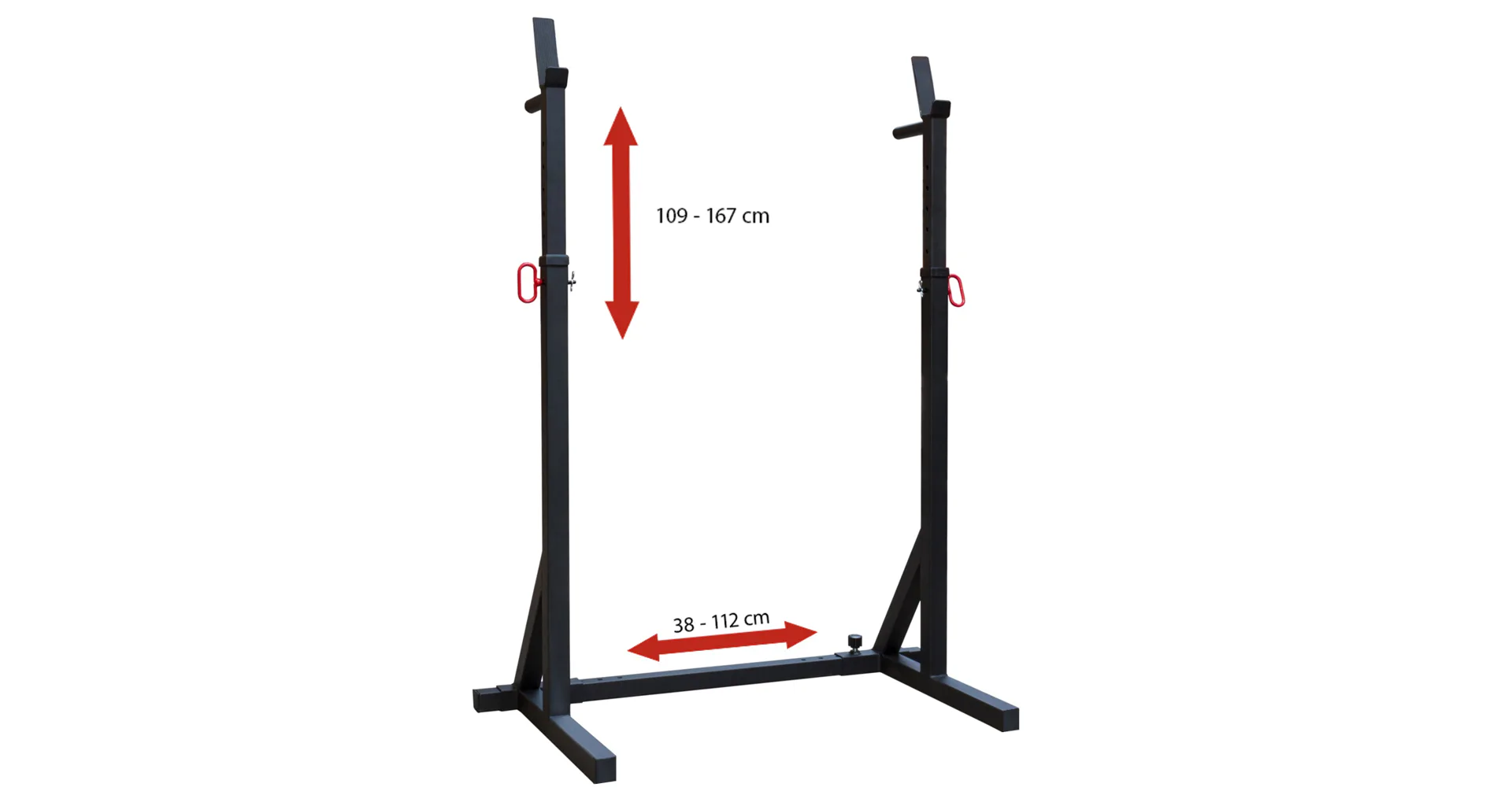 Díky spojené konstrukci s jedinečnou možností nastavení šířky je stojan použitelný na všechny typy činek a pro všechny postavy a současně je oproti dvěma samostatným stojanům stabilnější a činku lze do něj pohodlně odložit s větší razancí. Nastavitelná rozteč stojanu je od 38 cm do 112 cm. Nastavitelná je také výška a to od 109 cm do 167 cm.