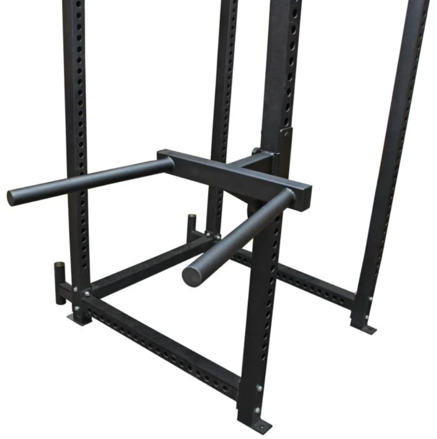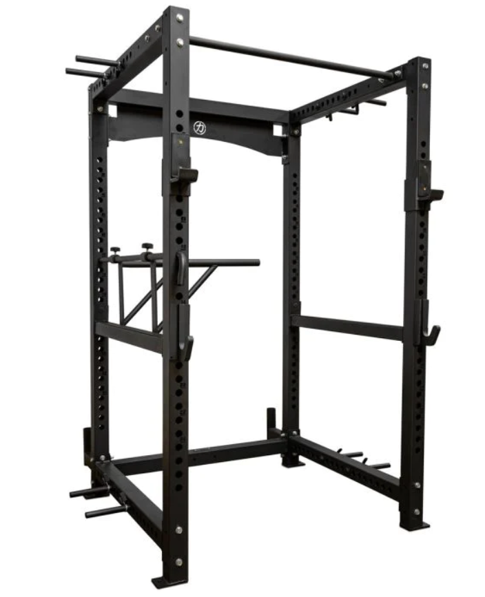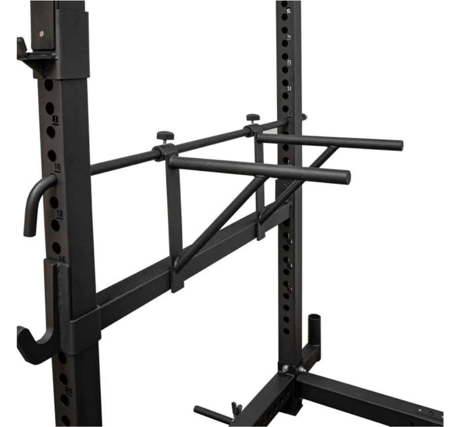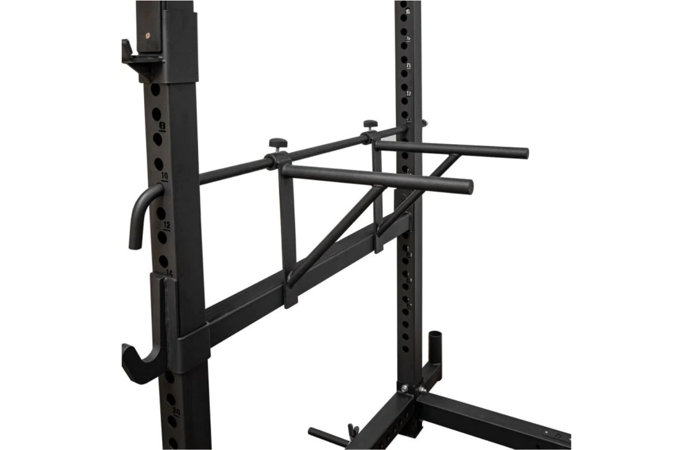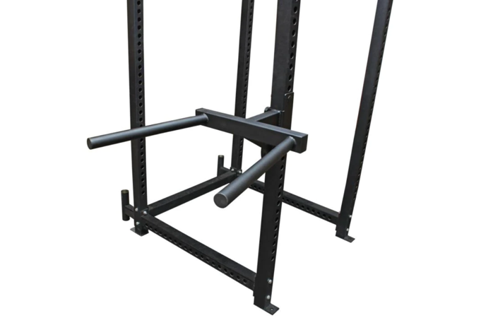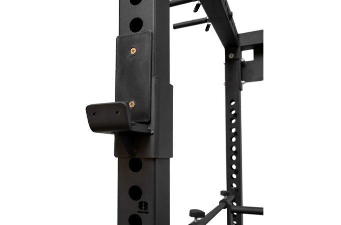 Stojan je vybaven: 2 výškově nastavitelnými odkládacími háky, 2 výškově nastavitelnými bezpečnostními háky, rovnou hrazdou, 2 držáky na olympijskou osu, výškově nastavitelným dipovým adaptérem, trny pro uchycení odporové gumy (včetně pružinových uzávěrů).