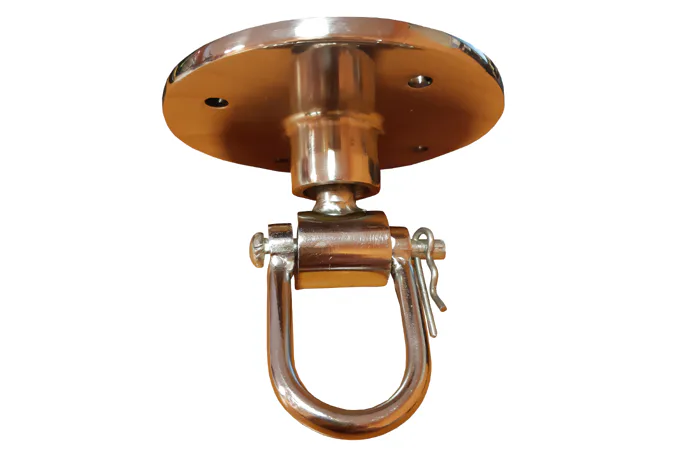 Kvalitní ocelový stropní závěs otočný ložiskový BAIL na boxovací pytel s otočným okem zabraňující vytrhávání ze stropu (během tréninku se u neotočných úchytů přenáší rázy na úchyt). Skvělá volba pro zavěšení boxovacího pytle na strop. Držák ideálně rozloží celou váhu pytle. Je přizpůsoben potřebám cvičení nejsem svými rozměry, kvalitní povrchovou úpravou, ale i estetickým a praktickým vzhledem.