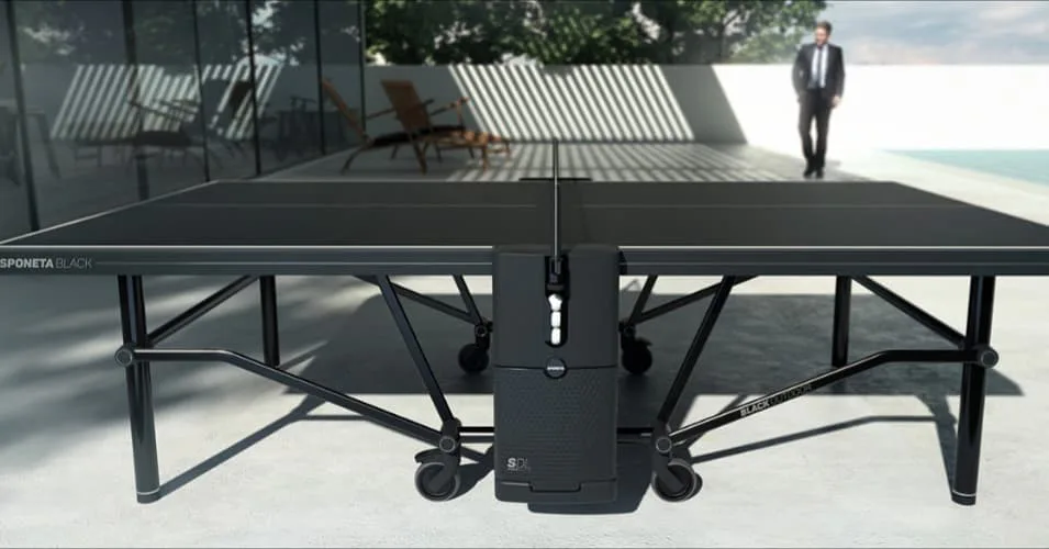 SPONETA Design Line určuje nové standardy z hlediska elegance, funkčnosti a radosti z hraní. Veškeré naše technické know-how v kombinaci s nejmodernějšími technologiemi se spojuje v jedinečném designu s vysokými standardy kvality pro optimální zábavu. Black Edition byl navržen speciálně pro moderní a otevřené prostředí. Vysoce kvalitní povrchová úprava rámu v barvách matná a leská černá. Designový stůl na stolní tenis SPONETA Design Line - Black Outdoor pro venkovní - exteriérové použití.