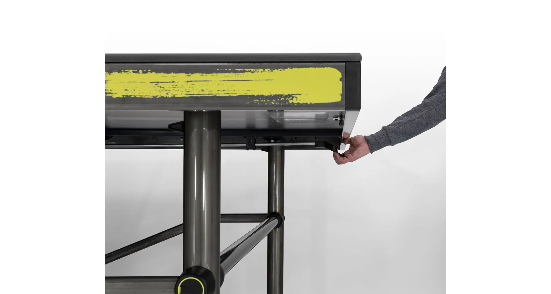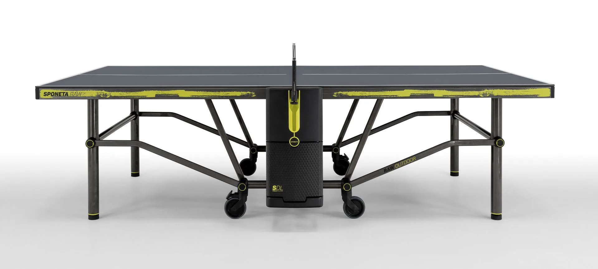 SPONETA Design Line určuje nové standardy z hlediska elegance, funkčnosti a radosti z hraní. Veškeré naše technické know-how v kombinaci s nejmodernějšími technologiemi se spojuje v jedinečném designu s vysokými standardy kvality pro optimální zábavu. Black Edition byl navržen speciálně pro moderní a otevřené prostředí. Vysoce kvalitní povrchová úprava rámu v barvách matná a leská černá. Designový stůl na stolní tenis SPONETA Design Line - Raw Outdoor pro venkovní - exteriérové použití.
