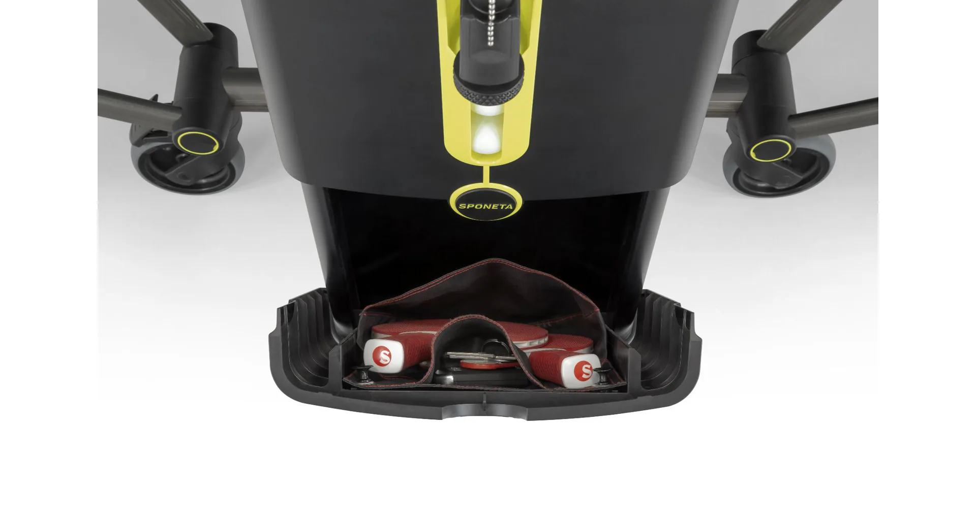 | Vybavenost stolu | Držák na pálky, zásobník pro míčky |
