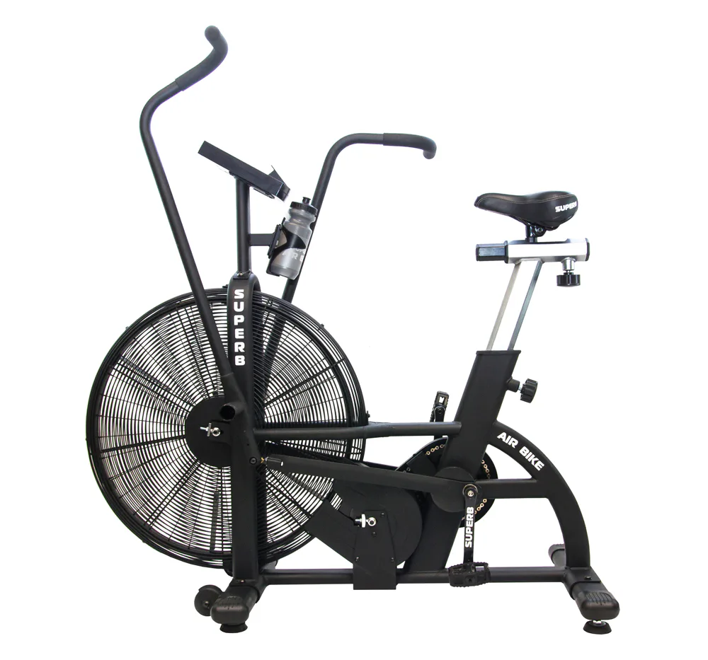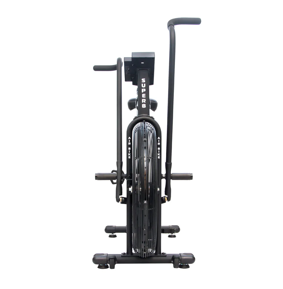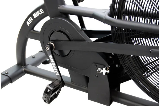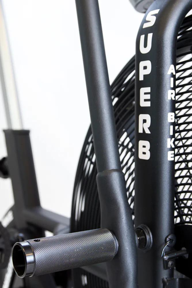 SUPERB AIR BIKE je kombinací profesionálního cyklotrenažéru s eliptickým trenažérem určený pro nejnáročnější cvičence. Jedná se o velmi kvalitní trenažér určen do crossfitových tělocvičen, rehabilitačních zařízení a profesionálních fitcenter, ale i na domácí provoz. Jeho masivní rám z vysokopevnostní oceli má nosnost 136 kg a povrchová úprava má průmyslový práškový lak. Pro dlouholetou životnost a minimální potřebu údržby jsou všechny pohyblivé části osazeny průmyslovými kuličkovými ložisky.