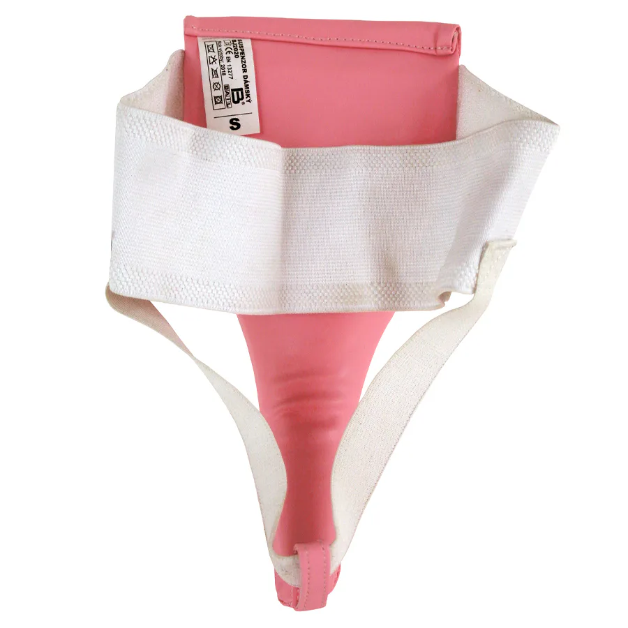 Suspenzor v růžové barvě určený pro ženy pro ochranu oblasti rozkroku. Povinná výbava pro kontaktní a úpolové sporty. Je určen pro bojové sporty beze zbraně jako je BOX, KARATE, SAMBO, TAEKWONDO atd. Snížuje účinek náhodných a menších nárazů při kontaktu se soupeřem. Velikost chrániče zvolte podle výšky, věku a tělesných proporcí, tak aby dobře padnul (viz. přibližná tabulka dole pod textem).