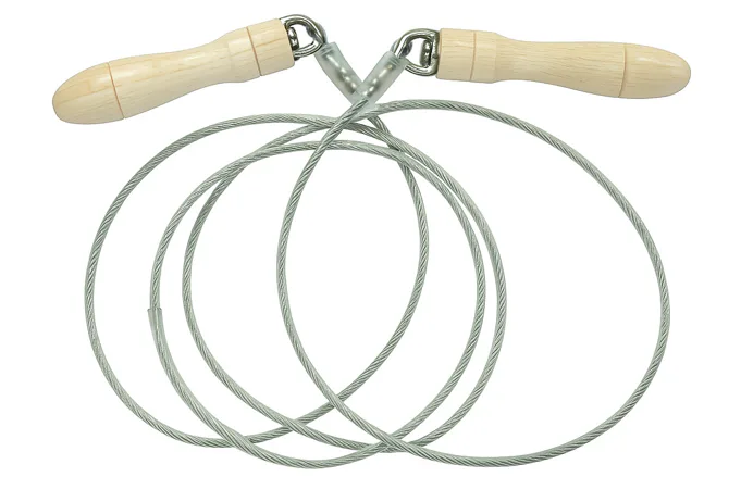 Švihadlo BAIL s ocelovým lankem - dřevěné rukojeti je navrženo pro intenzivní trénink a je ideální pro boxery i pro sálové sporty. Skládá se z pohodlných dřevěných rukojetí s otočným mechanismem a ocelového lanka potaženého bužírkou, což zajišťuje rychlost a plynulost pohybu. Díky malému průměru a dostatečné hmotnosti lanka dosahuje švihadlo vysoké rychlosti, zatímco otočný mechanismus umožňuje precizní kontrolu během cvičení. Dostupné délky jsou 2,5 m a 3 m.