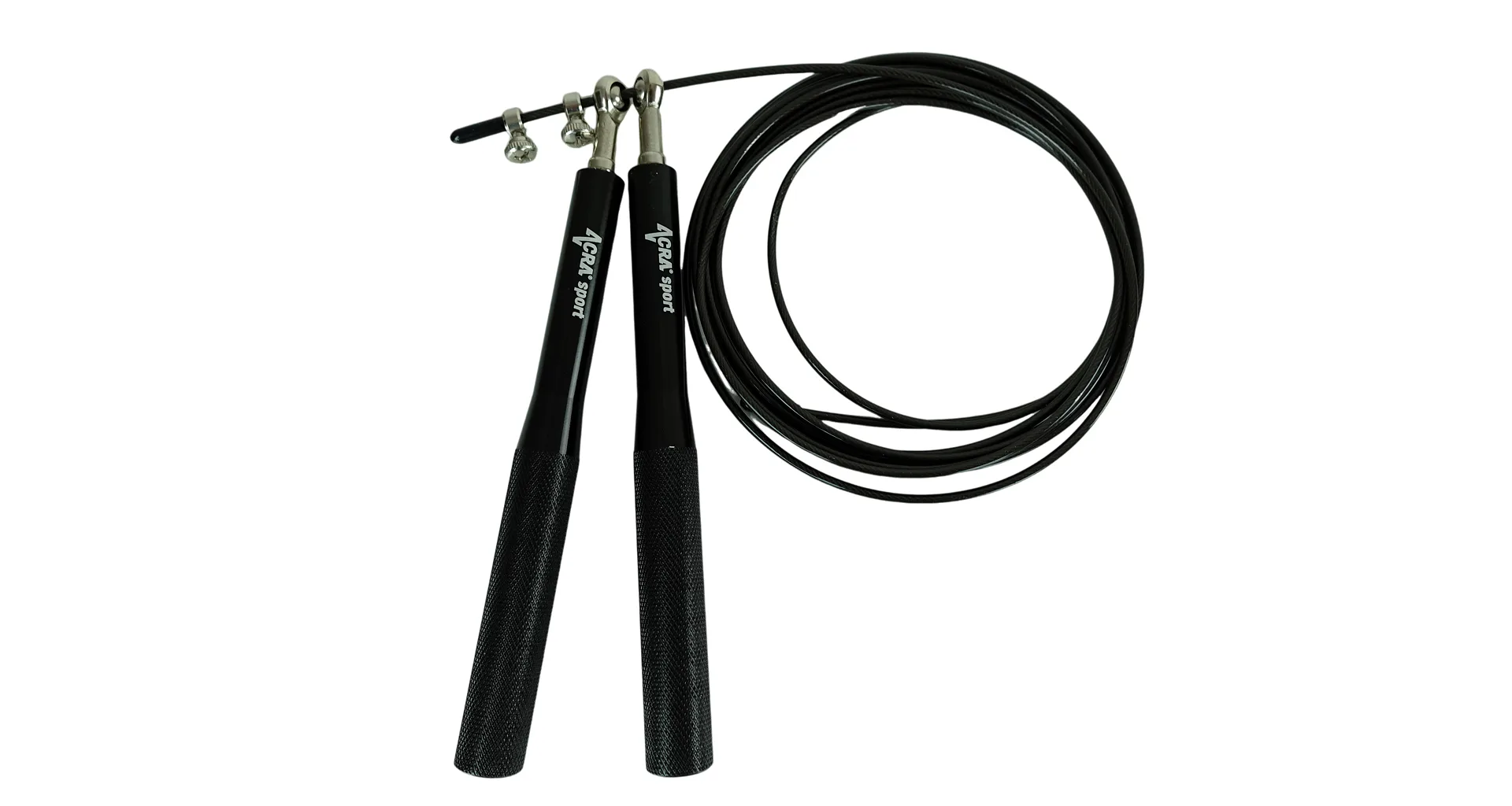 Švihadlo Acra černé je vynikající cvičební pomůckou pro zlepšení celkové kondice. Rukojeti, které jsou vyrobeny z pevného hliníku, mají protiskluzový povrch, což zajišťuje bezpečné a pohodlné uchycení. Kovová otočná ložiska s utahovacím šroubem umožňují snadné nastavení délky lanka dle potřeby. Samotné lanko má ocelové jádro chráněné gumovou bužírkou, a je zakončeno gumovými odnímatelnými pouzdry, které umožňují přesné zkrácení švihadla.