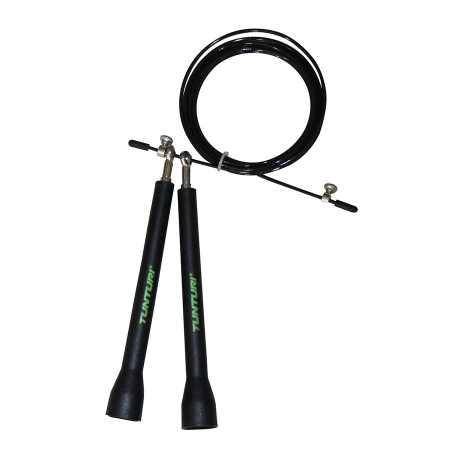 Švihadlo s ocelovým lankem a ložisky, PVC rukojeti TUNTURI je ideálním doplňkem pro mnoho druhů kondičních cvičení, tím nejčastějším jsou pak přeskoky kroužícího švihadla. Prováděním tohoto cviku dynamicky posilujete svalstvo nohou a současně rozvíjíte a posilujete činnost vnitřních orgánů, oběhového, dechového a termoregulačního systému. Tento jednoduchý, ale maximálně efektivní cvik Vás nutí k pravidelnému rytmu dýchání, a výrazně přispívá k zlepšení kloubní pohyblivosti. Ručky švihadla jsou ergonomicky tvarované a lano švihadla je vyrobeno z oceli potažené PVC.