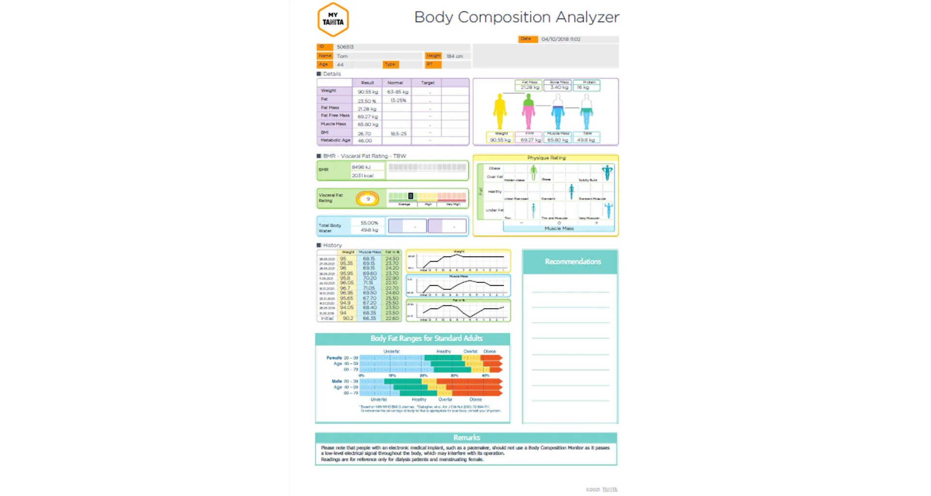 Tělesný analyzátor TANITA BC-401 černá s kompaktními rozměry 218 x 316 x 30 mm měří celkem 10 důležitých hodnot : tělesná hmotnost, fyzická koncdice, viscereální tuk, = tělesných tekutin, metabolický věk, BMI, BMR, hmotnost kostí, podíl svalové hmoty, podíl tělesného tuku. Platforma s čtyřelektrodovým systémem dokáže automaticky rozpoznat zadaného uživatele (max. 5 osob), podle nejbližší zjištěné tělesné váhy. Analyzátor BC-401 lze nastavit a používat při ručním zadání, ideálně se však ovládá pomocí mobilního telefonu s nainstalovanou aplikací My Tanita app .