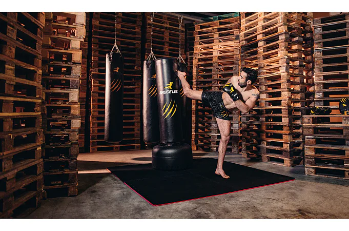 Dvoubarevné Tatami BRUCE LEE Karate Puzzle Mat o tloušťce 20 mm je sportovní podlahová krytina, používaná nejen pro bojové sporty a bojová umění, ale také v sálech pro jógu, wellness, rehabilitaci, v dětských koutcích a také ve fitness centrech. Provedení povrchu je vroubkované.