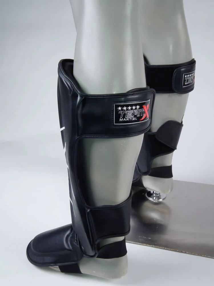Chrániče holěně a nártu od značky TEAM-X pro pro použití v různých kontaktních sportech. Přichycují se pomocí širokých pásků se suchým zipem. Chránič tak optimálně utáhnete a díky tomu vám bude dobře sedět, ať už máte jakýkoliv tvar lýtka či nártu. Další výhodou je gumový pásek v oblasti achillovy šlachy, pomocí kterého chránič lépe přilne v místě kotníku, tudíž nemá tendeci v tomto místě odstávat.