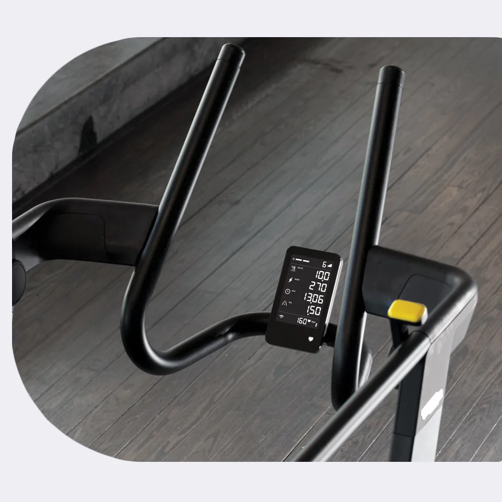 TRÉNINKOVÝ POČÍTAČ (dotykový, se 7" LCD inverzním displejem, s celkem 6 numerickými hodnotami), s ochranou IP55, a s možností vedení virčtuálního tréninku přes kód QR kód, možnost přenosu dat z tréninku do aplikace mywellness