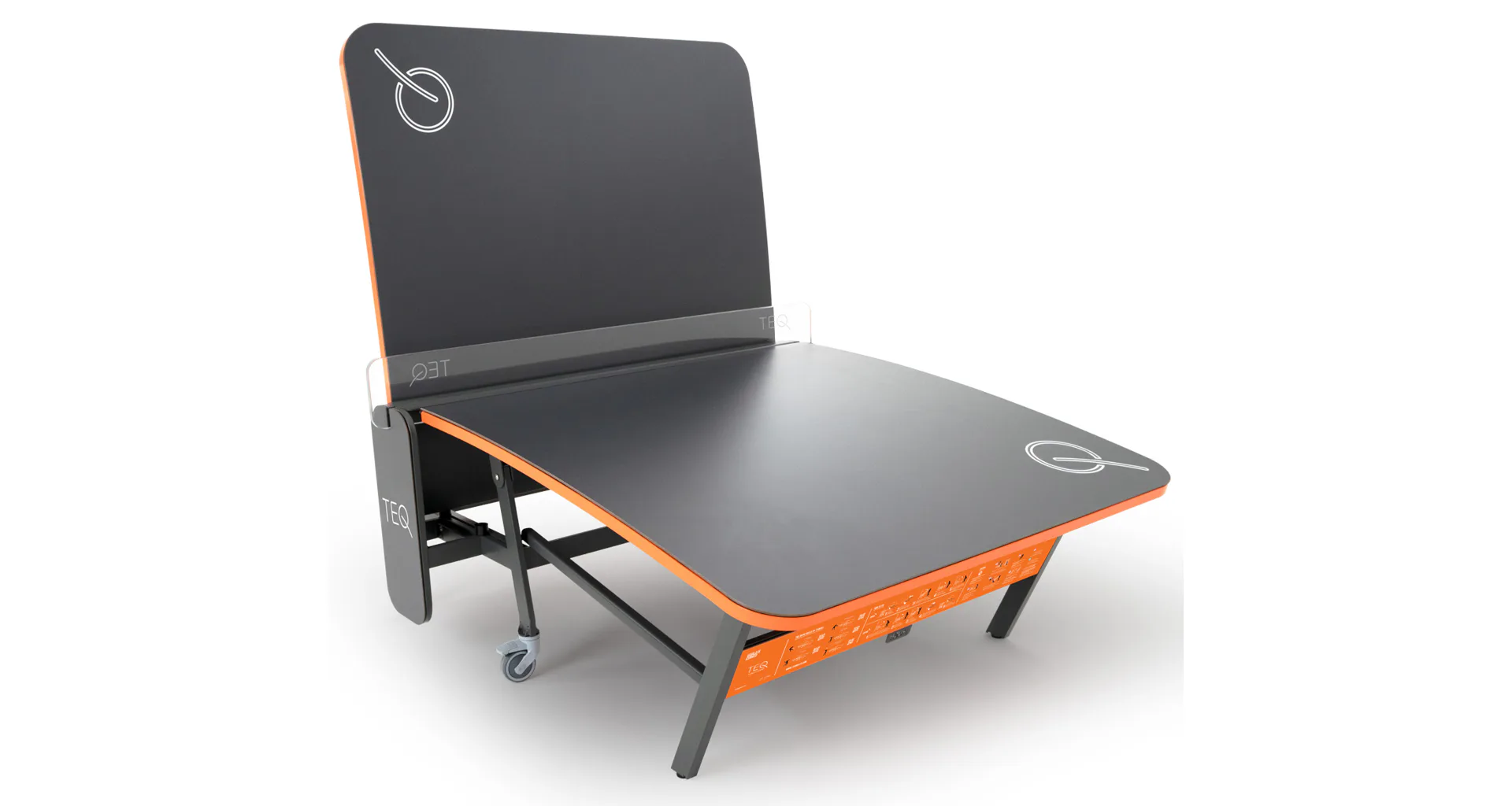 Teqballové stoly jsou vyrobeny tak, aby splňovaly náročné standardy kvality a trvanlivosti, přičemž TEQ™ SMART má další výhodu v tom, že se snadno přemisťuje na jakékoli místo, jak ve vnitřních, tak venkovních prostorách. To je možné díky přidání uzamykatelných kol a sklopné konstrukci.