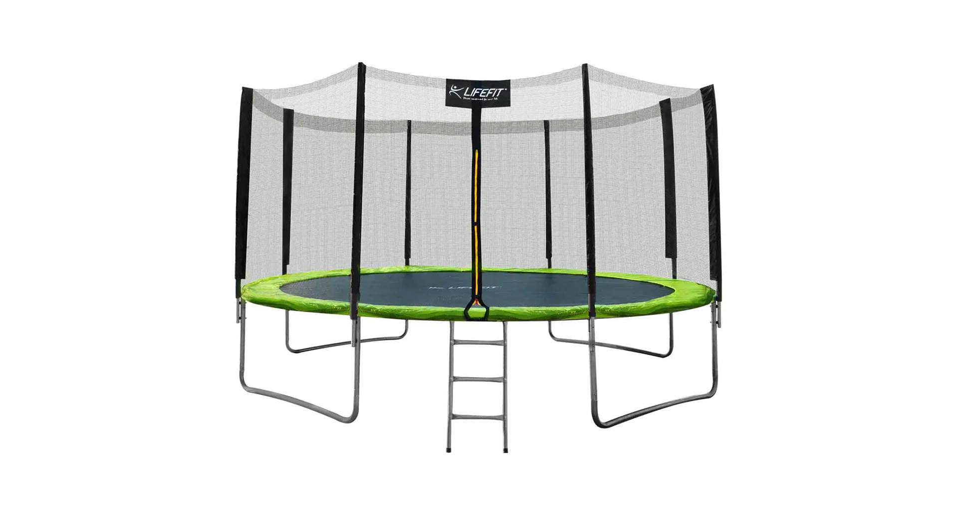 Trampolína LIFEFIT 14' s průměrem skákací plochy 424 cm je výborným pomocníkem pro zajištění zábavy pro děti či dospělé. Je určena pro exteriérové využití k instalaci na zem. Trampolínu lze snadno a rychle smontovat a v případě potřeby lze jednoduše přemístit na jiné místo. Jako materiál na konstrukci byla použita galvanizovaná ocel a materiálem skákací plochy je polypropylen. Ochrannou síť naleznete podél celé trampolíny. Tak máme zaručenu maximální bezpečnost, takže nehrozí žádný úraz z vypadnutí. Na trampolínu se pohodlně dostanete po schůdkách, které jsou součástí balení, stejně jako ochranná síť