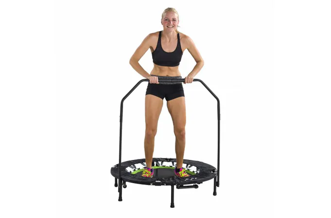 TUNTURI skládací trampolína s držadlem Folding Fitness pro trénink pohybových aktivit a přidanými nohami pro lepší stabilitu. Je opatřena madlem pro přidržení a pro kondiční cvičení. Madlo lze snadno namontovat a zase demontovat a je pokryto speciální pěnou s protiskluzem. Stabilní rukojeť s pěnovými protiskluzovými rukojeťmi.