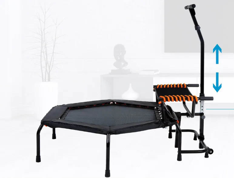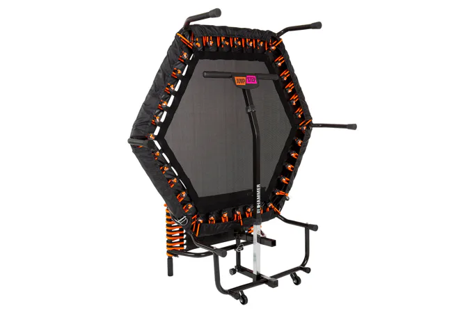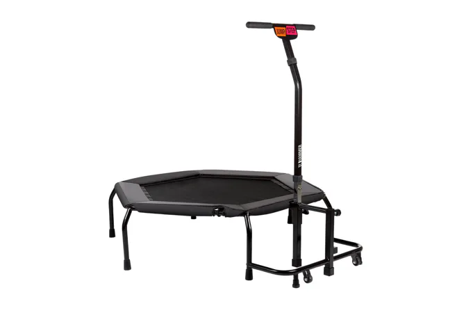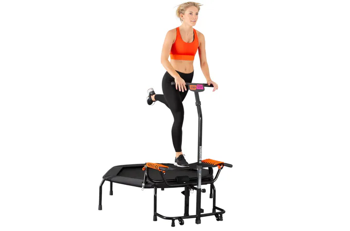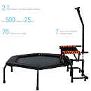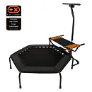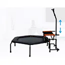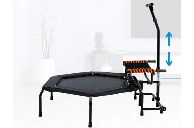 Je vyrobena z kvalitního materiálu a máš šestihranné provedení. Trampolína je vybavena výškově nastavitelným madlem ve tvaru-T, díky kterému se můžete při skákání přidržovat. Pro větší úsporu místa je možné nožičky trampolíny sklopit a schovat ji například pod postel.
