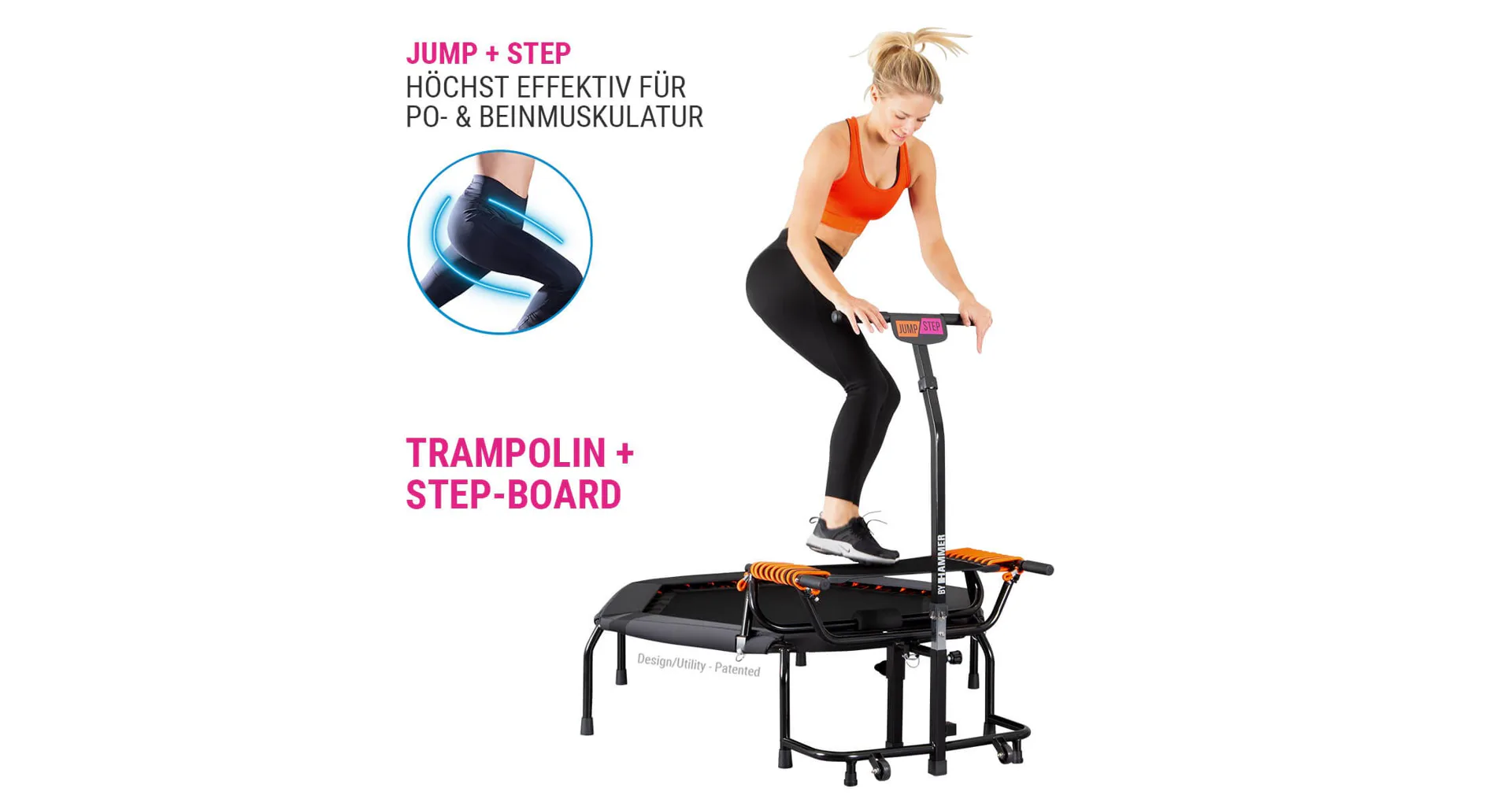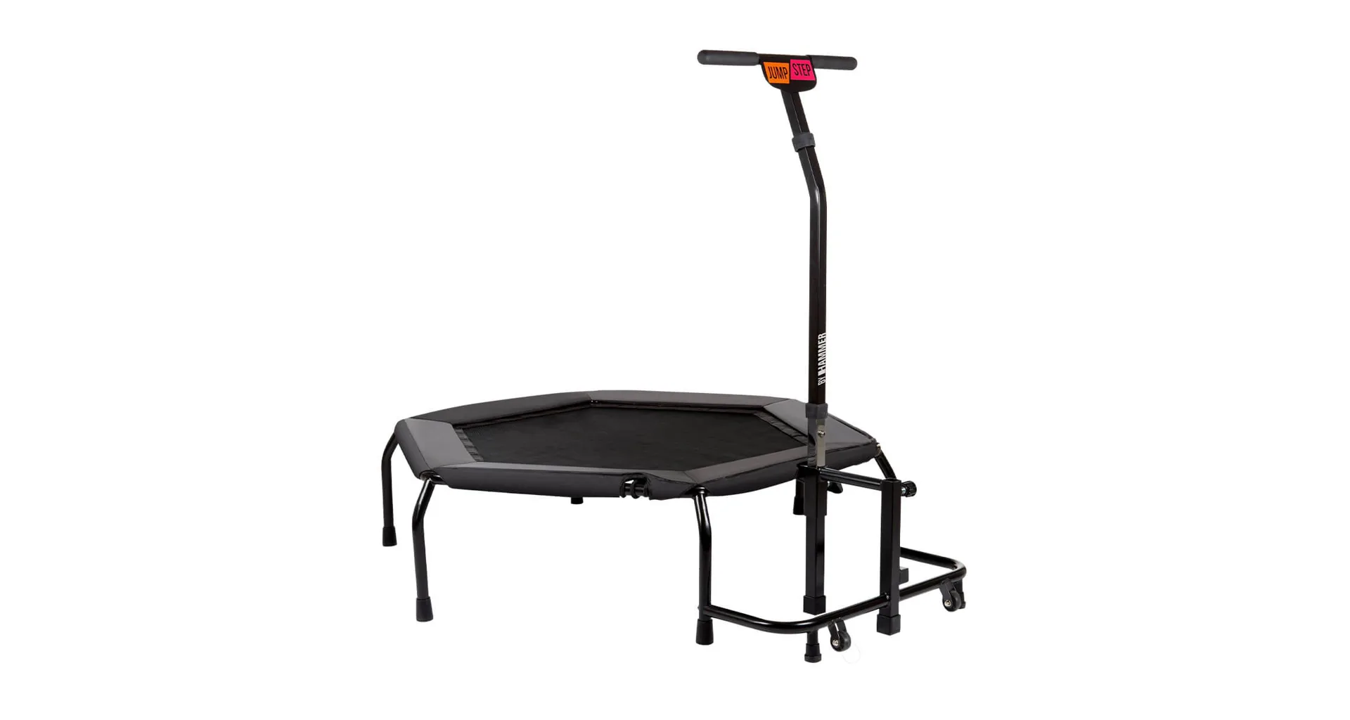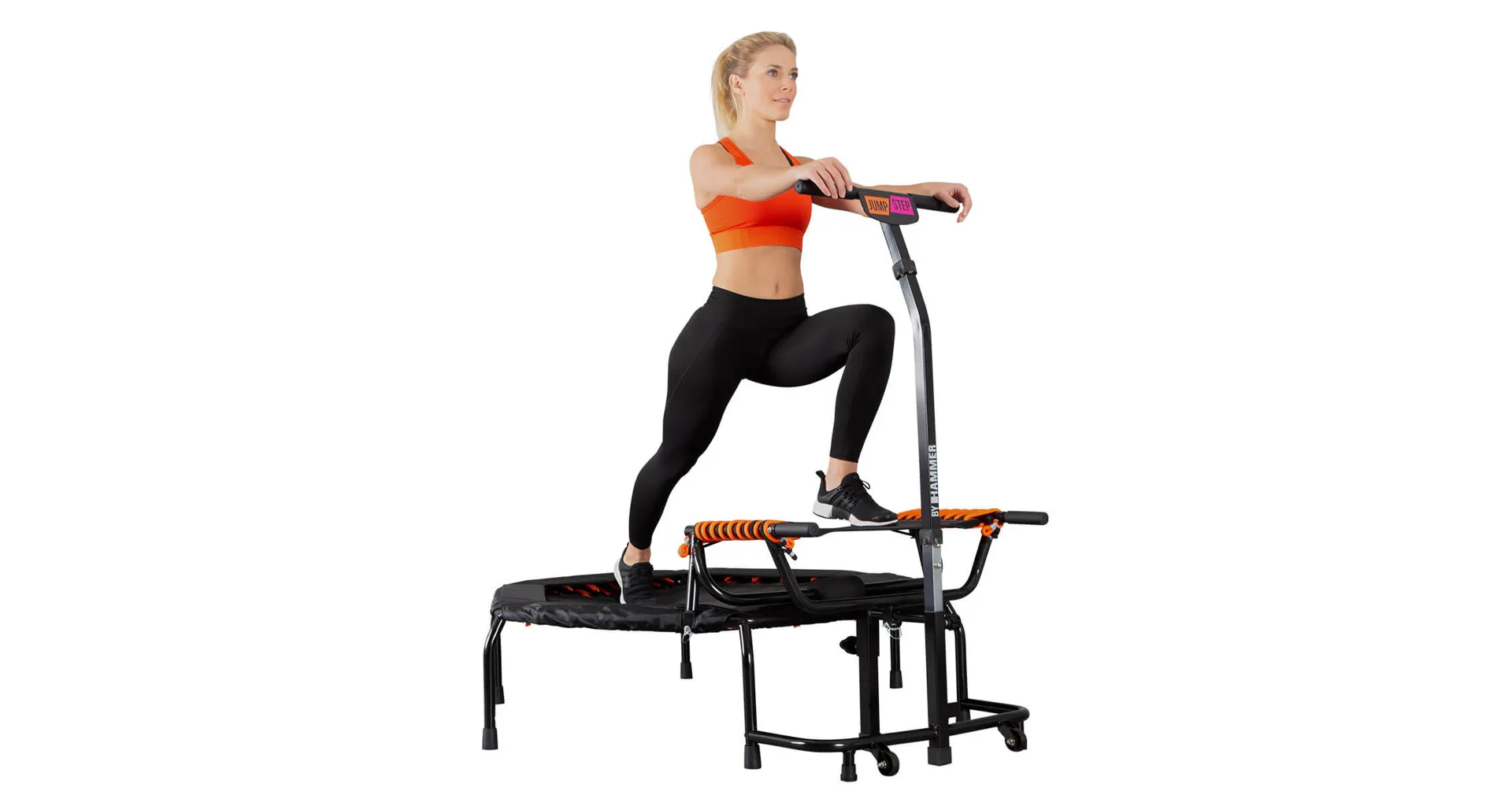 Fitness trampolína HAMMER JumpStep je speciální trampolína s madlem a flexibilní stupačkou pro intenzivní trénink hýždí. Zkombinujte skákání se step aerobikem. S inovativní nášlapnou deskou trampolíny JumpStep můžete provádět ještě více skákacích choreografií než s klasickou trampolínou. Trampolína Jump Step pozvedla skákání na novou úroveň.