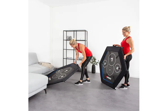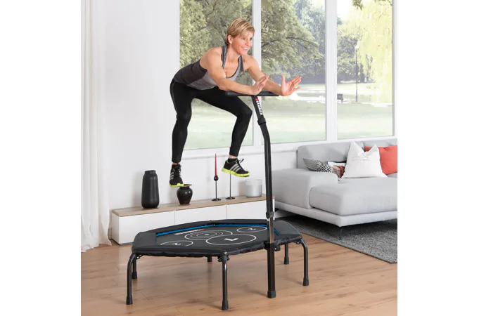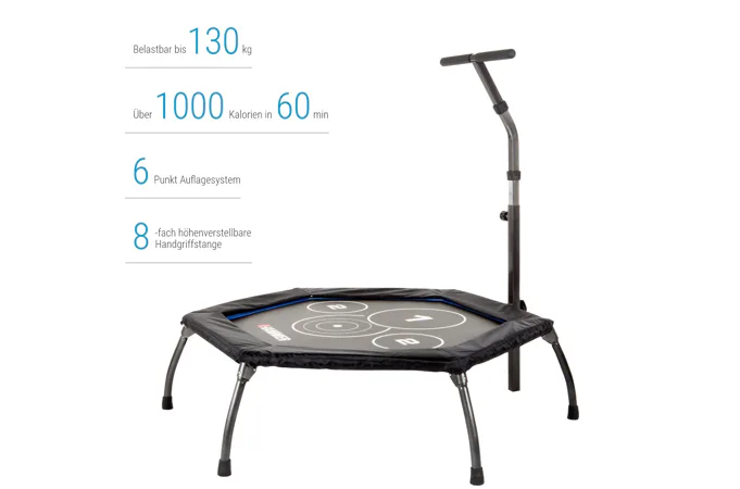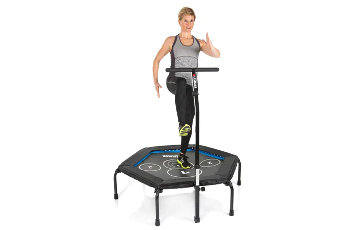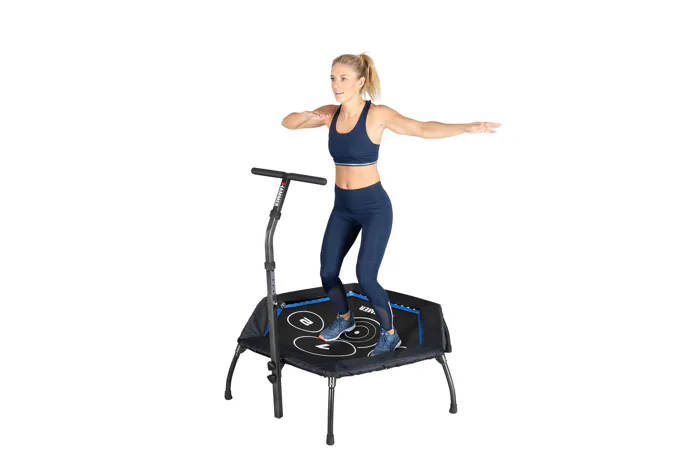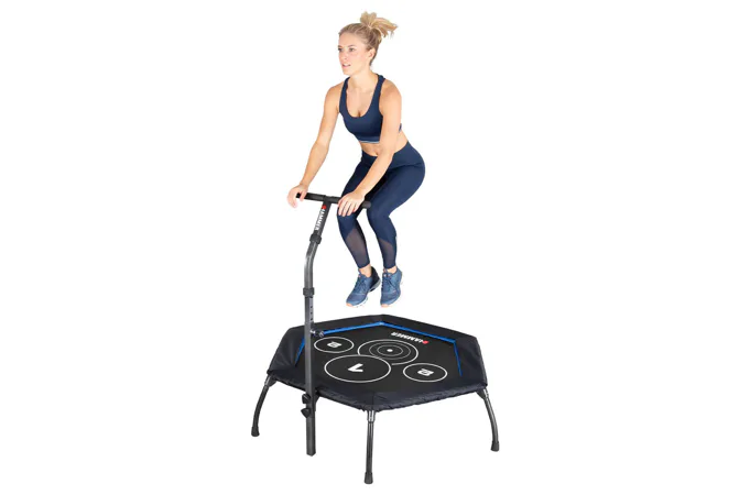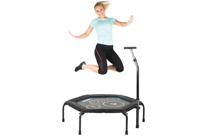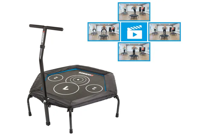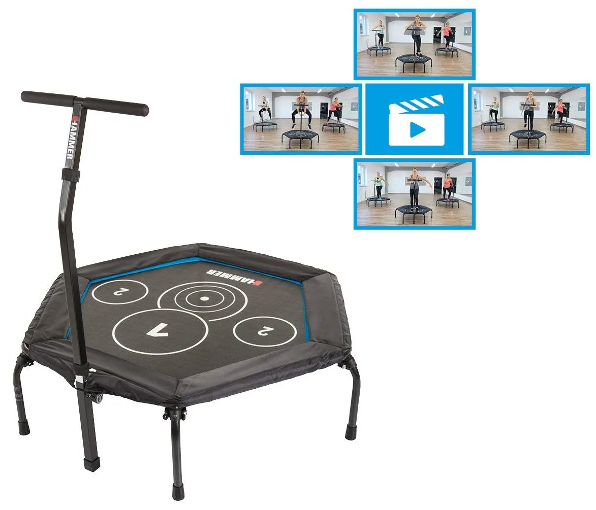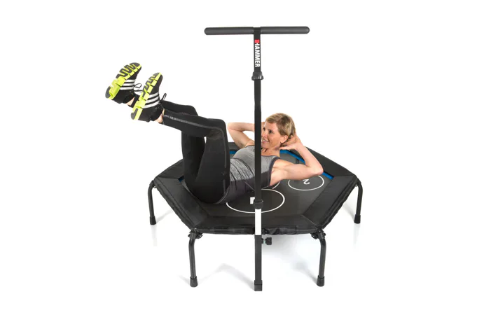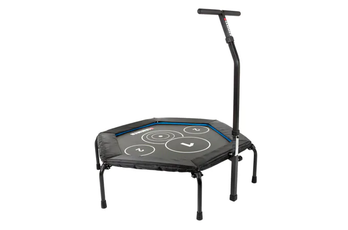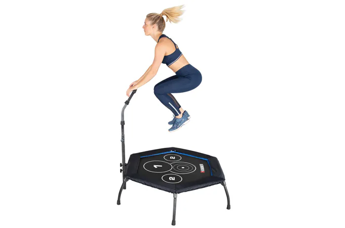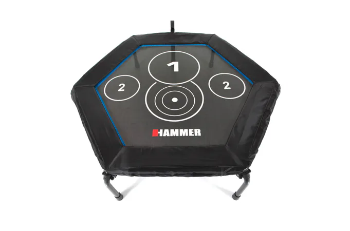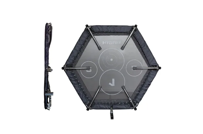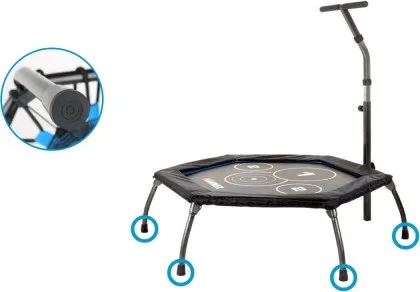 Trampolína Fitness Cross Jump HAMMER je speciální trampolína pro účinnější a efektivní skákání. Je vyrobena z kvalitního materiálu a máš šestihranné provedení. Obsahuje kruhové body na skákací ploše, které poskytují perfektní tréninkový podnět a ještě účinnější cvičení. Trampolína je vybavena madlem ve tvaru-T, díky kterému se můžete při skákání přidržovat. Trampolínu lze po cvičení složit a uložit například pod postel.