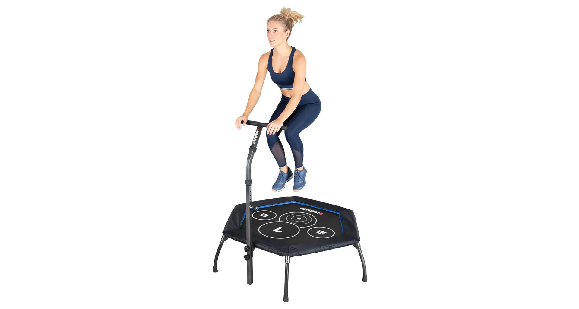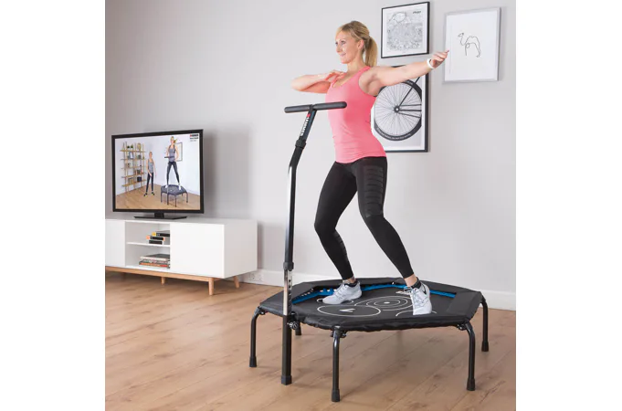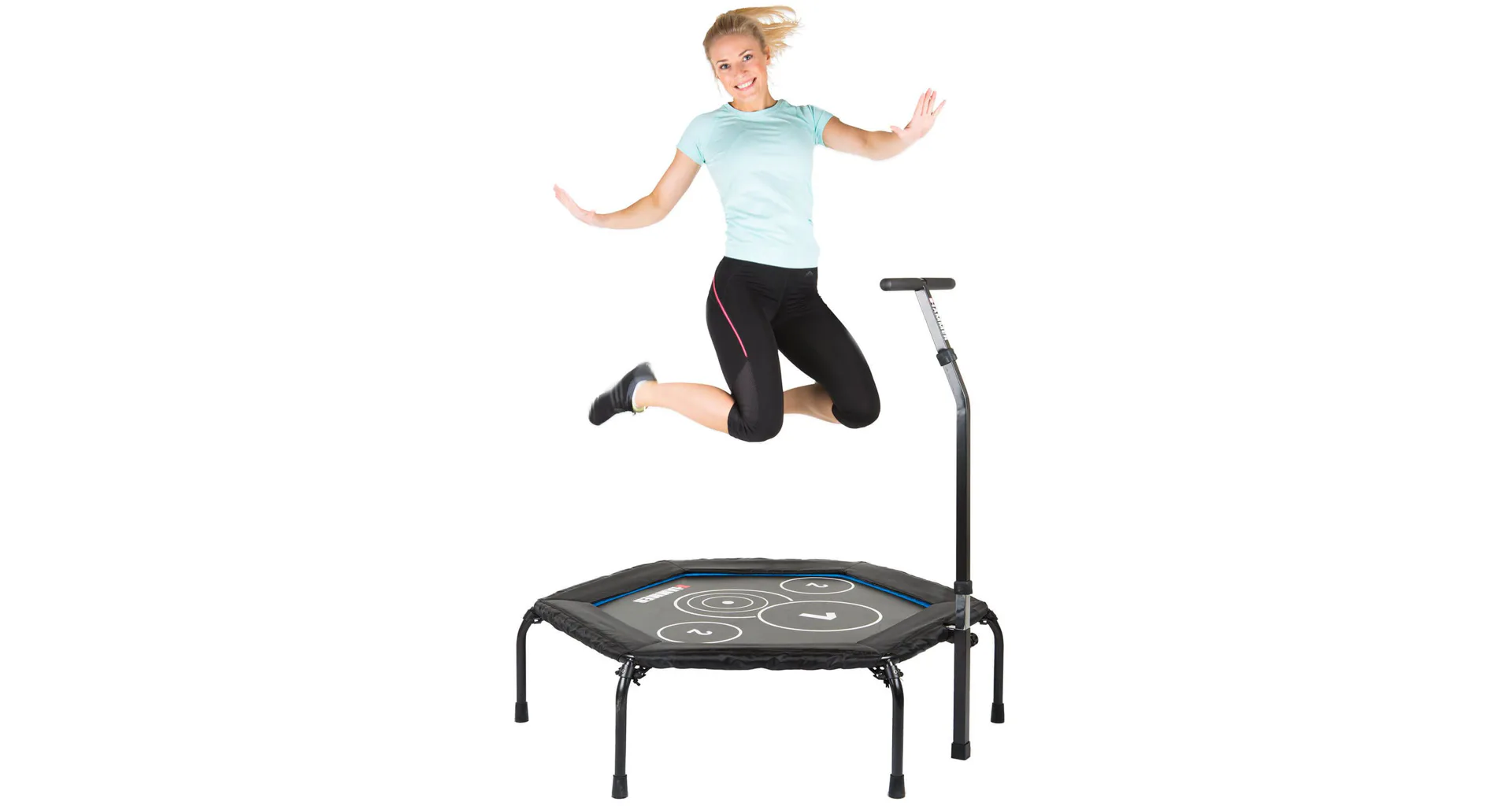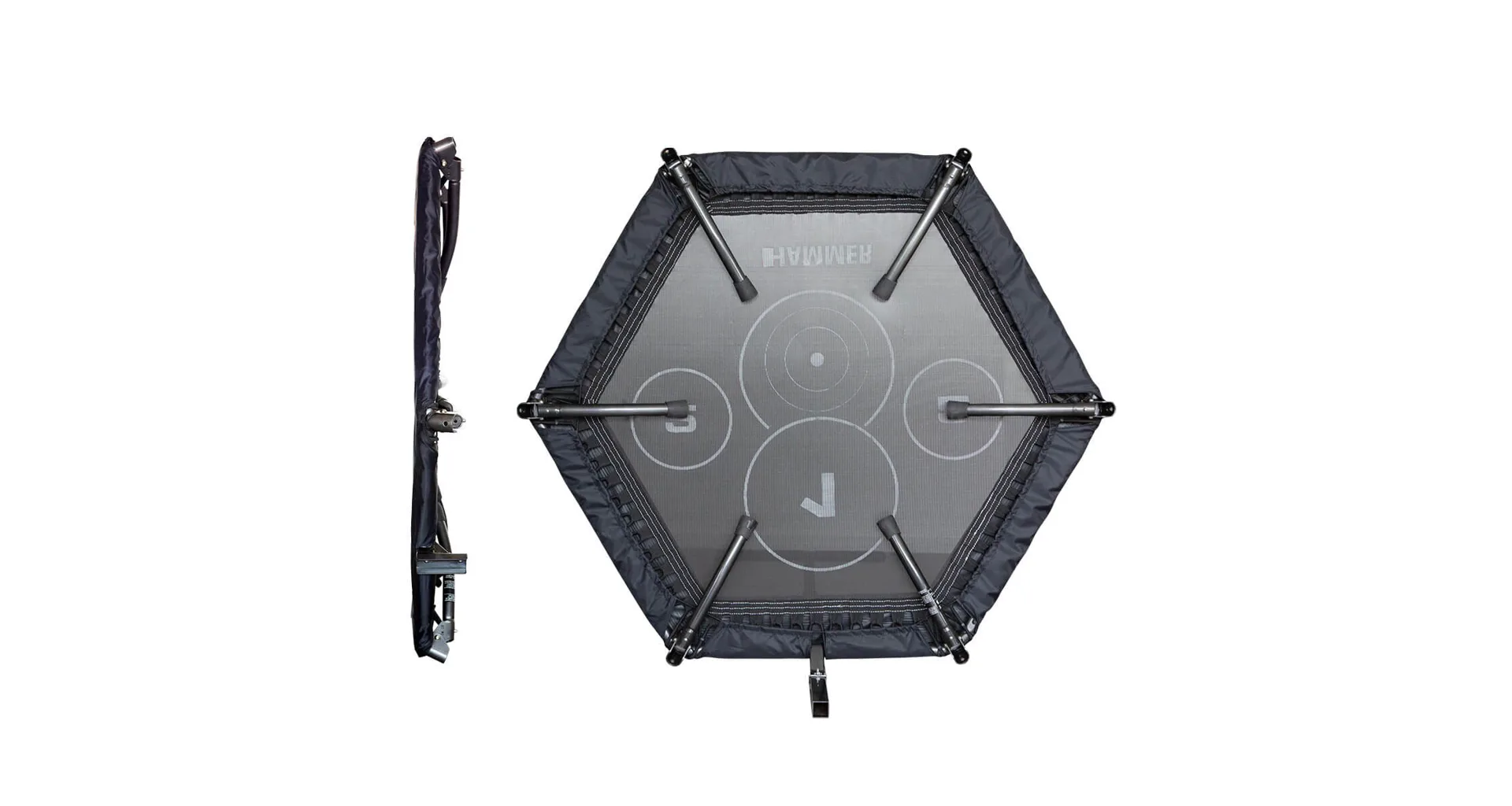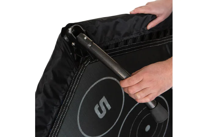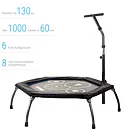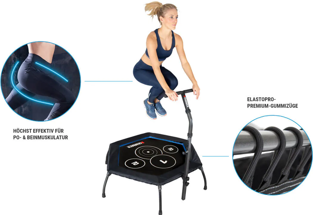 Trampolína Fitness Cross Jump HAMMER je speciální trampolína pro účinnější a efektivní skákání. Je vyrobena z kvalitního materiálu a máš šestihranné provedení. Obsahuje kruhové body na skákací ploše, které poskytují perfektní tréninkový podnět a ještě účinnější cvičení. Trampolína je vybavena madlem ve tvaru-T, díky kterému se můžete při skákání přidržovat. Trampolínu lze po cvičení složit a uložit například pod postel.