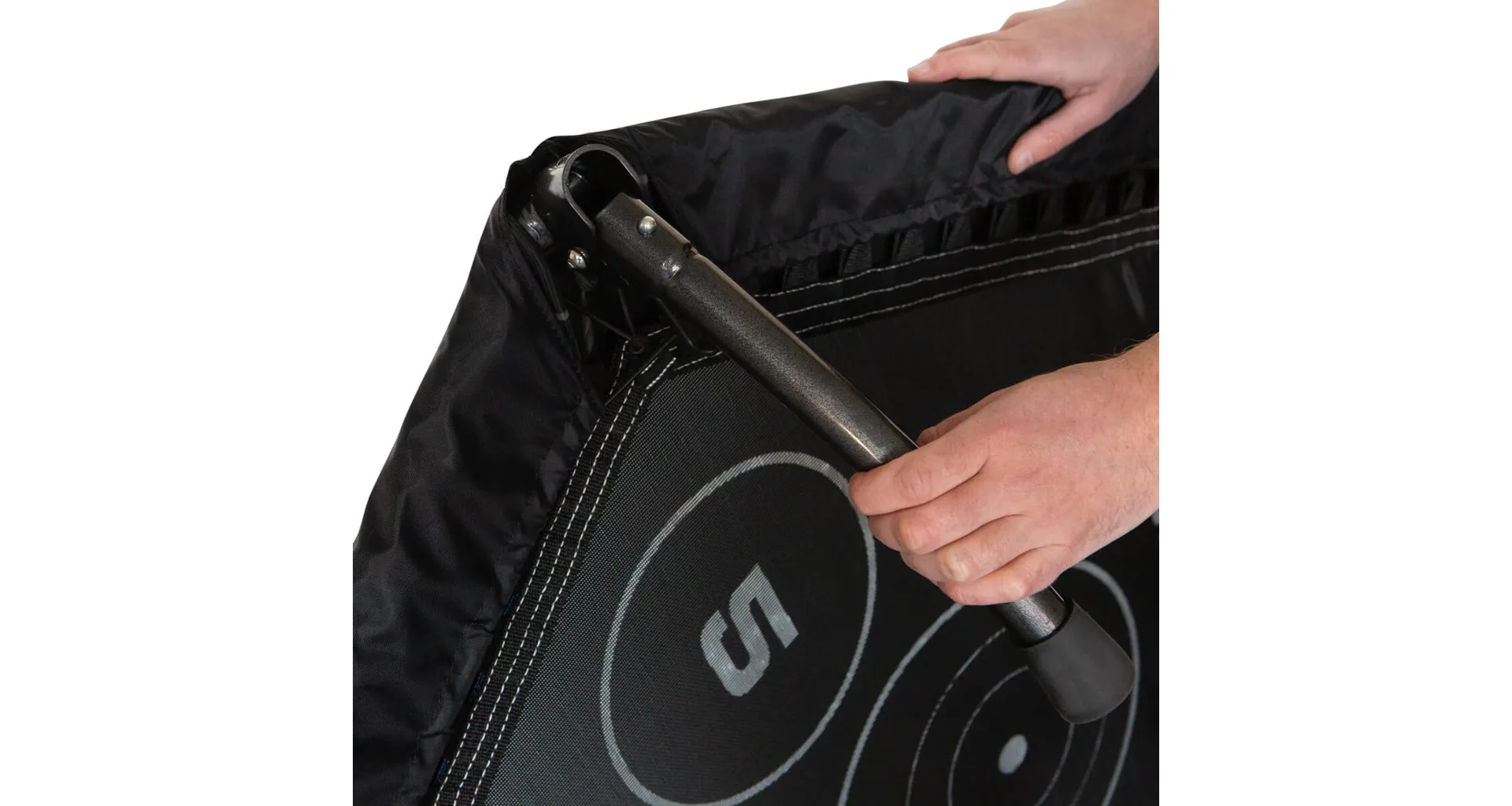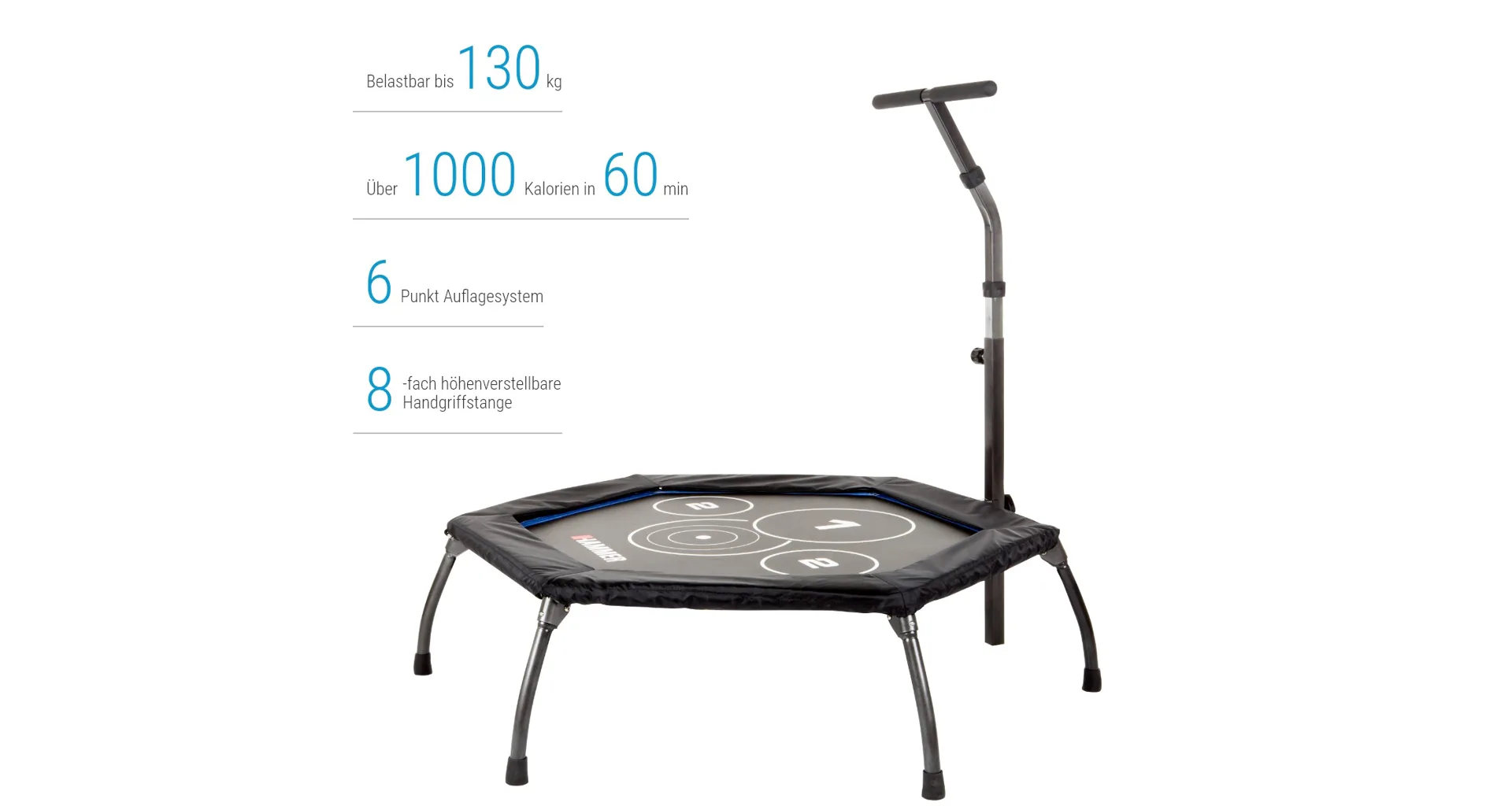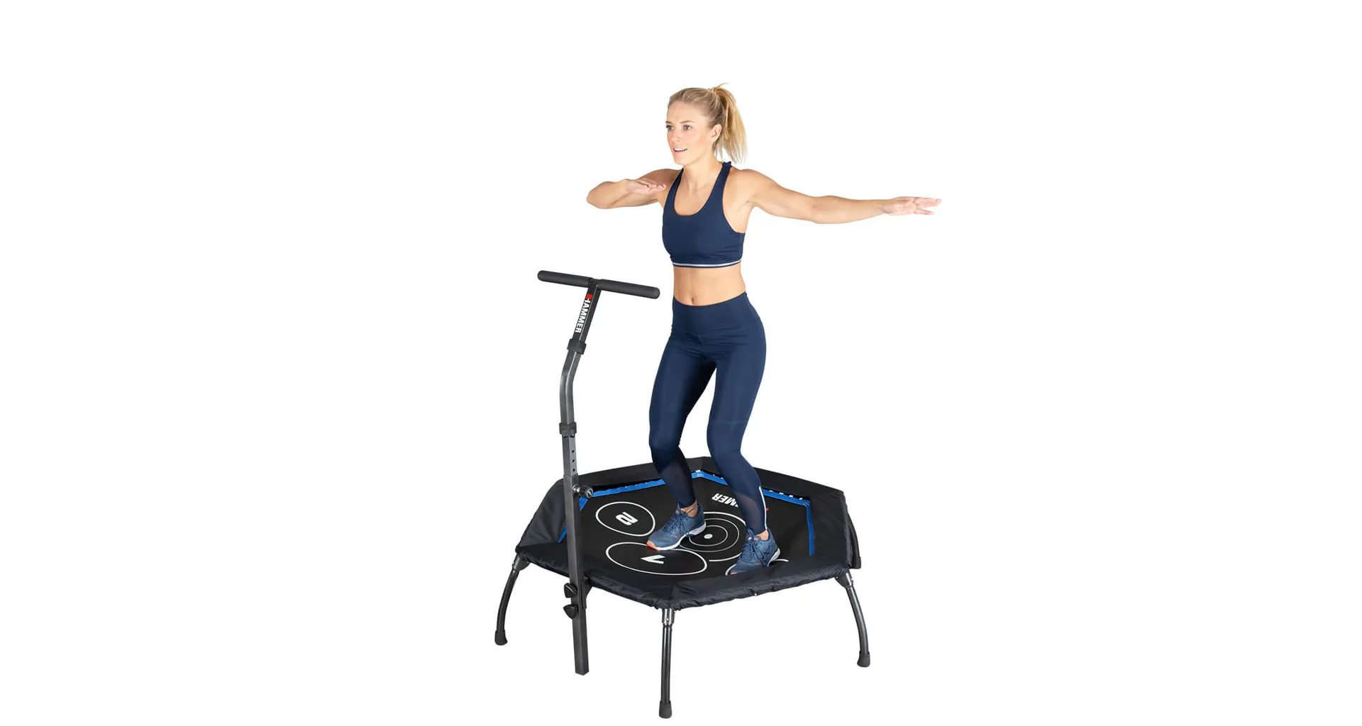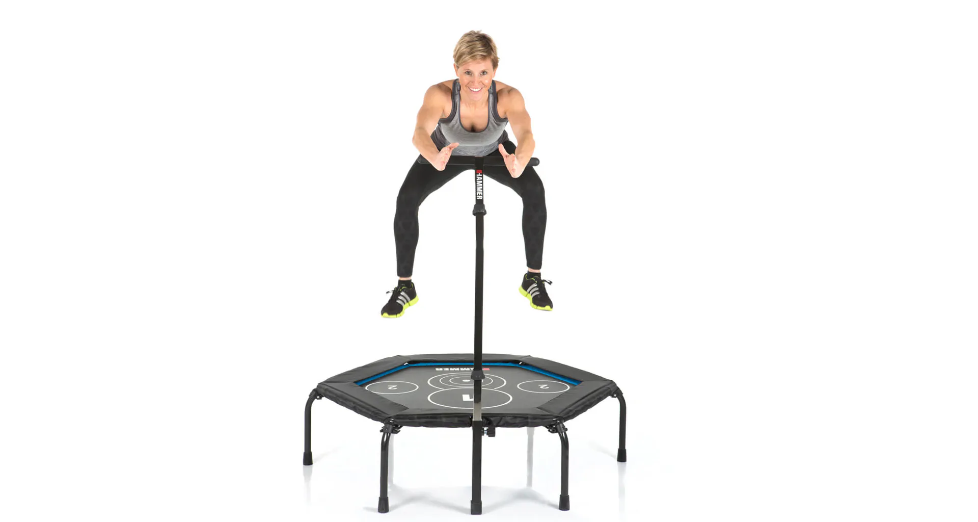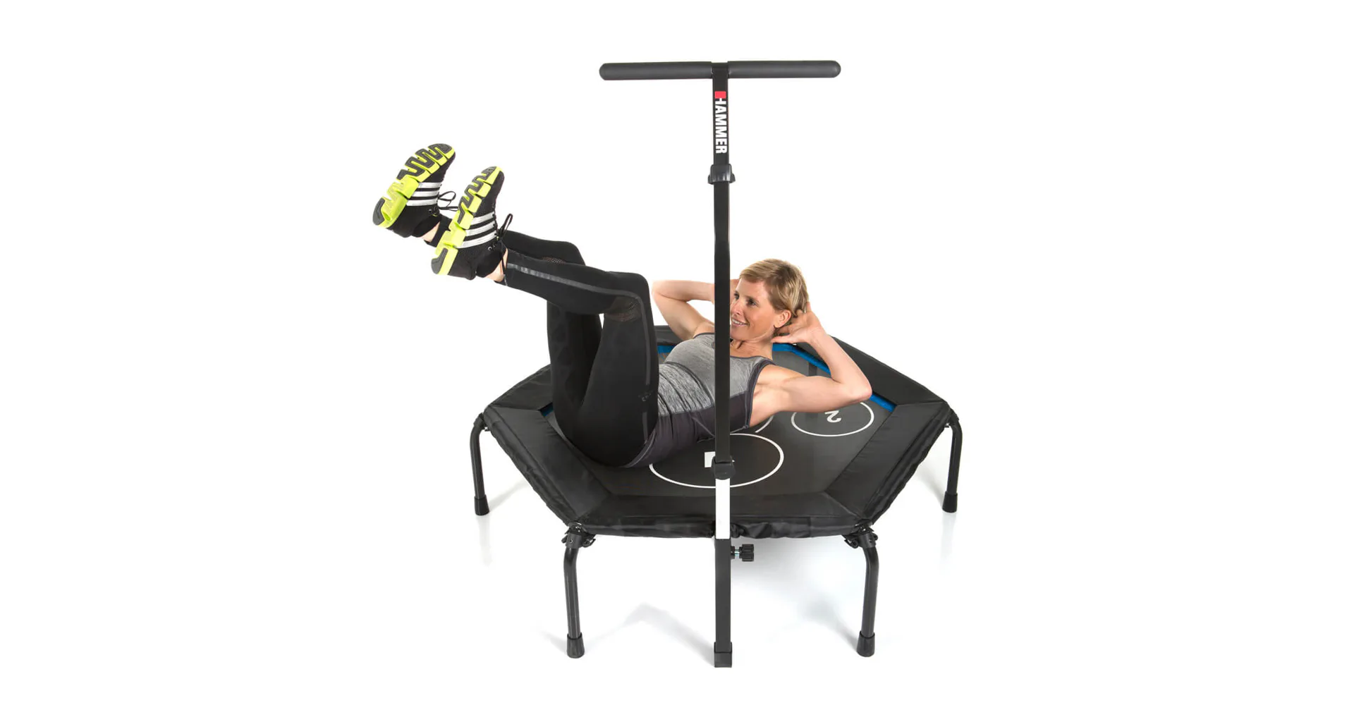 Trampolína Fitness Cross Jump HAMMER je speciální trampolína pro účinnější a efektivní skákání. Je vyrobena z kvalitního materiálu a máš šestihranné provedení. Obsahuje kruhové body na skákací ploše, které poskytují perfektní tréninkový podnět a ještě účinnější cvičení. Trampolína je vybavena madlem ve tvaru-T, díky kterému se můžete při skákání přidržovat. Trampolínu lze po cvičení složit a uložit například pod postel.