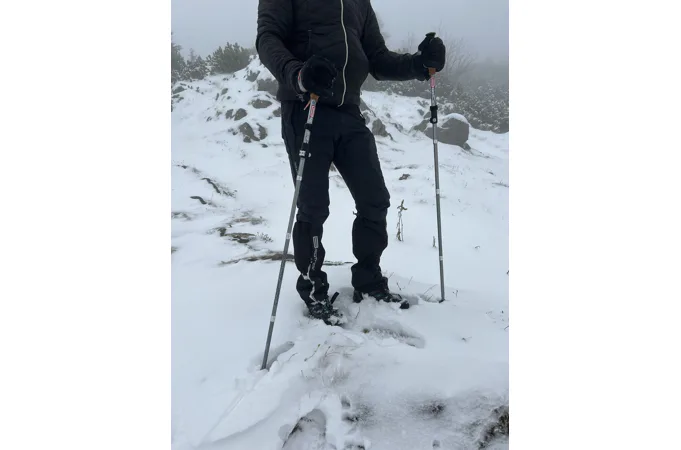 5-dílné skladací hole mají protismykovou rukojeť z korku s pevnými poutky s nastavitelnou délkou, které dobře drží ruce při chůzi. Pevná hliníková konstrukce z kvalitní slitiny ALU7075. Rychloupínací mechanismus má Alu páčku na seřízení délky hole. Teleskopické hole nejsou náročné na údržbu. Hole jsou pevné na vzepření, ale nemůžeme je používat jako páku. Tehdy se snadno ohnou nebo zlomí. Příčinou bývá, pokud se hůl dostane do nějaké spáry nebo díry. Proto je třeba i v létě nosit kroužky.