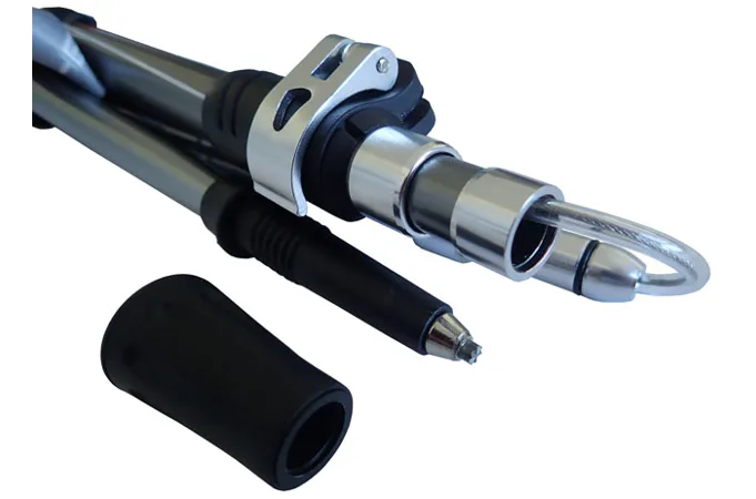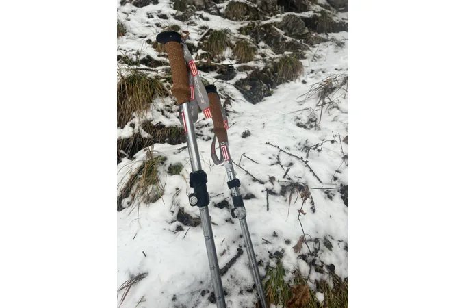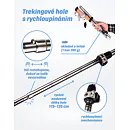Jednoduchá výměna kroužků, snadno regulovatelný a bezpečný systém nastavení s rychloupínáky dokonale poslouží pro všechna roční období. Trekingové hole z odolné hliníkové slitiny využívají 5-dílný skládací mechanismus podobný skládání stanových tyčí. Jsou lehké a velmi skladné. Rozměr v rozloženém stavu je 40x12x6 cm. Korková tvarovaná rukojeť se dobře drží v ruce a poskytuje větší komfort při chůzi. Skládací systém hole je rychlý a jednoduchý.