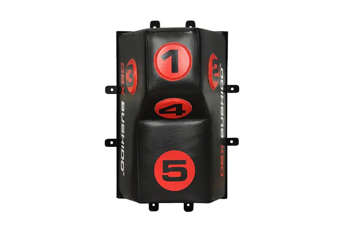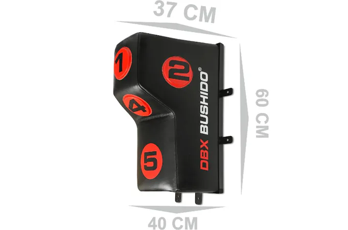 Úderový terč DBX BUSHIDO DBX-W-10B s kónickým výstupkem je určený pro trénink háků a úderů lokty a koleny. Optimální rozměry terče zajišťují pohodlný trénink a odolný materiál je zárukou dlouhé trvanlivosti i při velice intenzivním tréninku. Tréninkový terč je ideálním doplňkem ke klasickému boxovacímu pytli. Model DBX-W-10B navíc disponuje 5-ti terči označenými čísly, které se využívají během tréninku s trenérem, který cvičenci zadává postupně body, do kterých má udeřit.