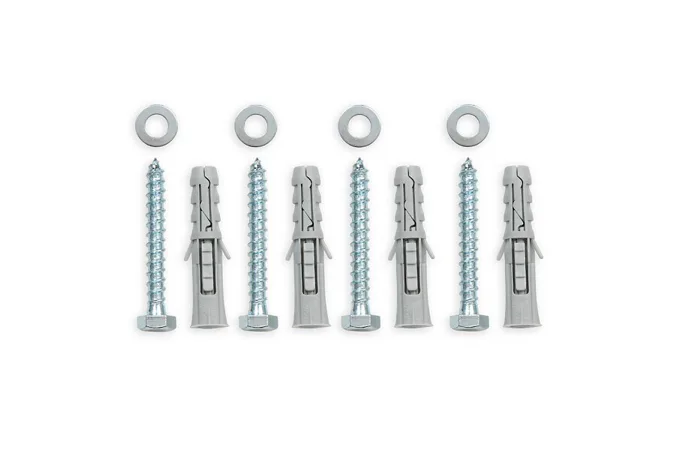 Součástí balení je sada šroubů a hmoždinek pro montáž do pevného zdiva.