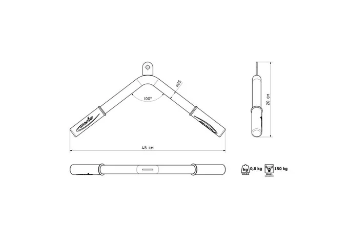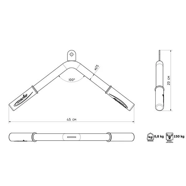 Tricepsový adaptér MARBO MH-C105 je vhodným doplňkem Vašich posilovacích zařízení. Toto příslušenství slouží především k vrchnímu stahování kladky, při kterém posílíte svaly tricepsu. Maximální zatížení adaptéru je 150 kg.