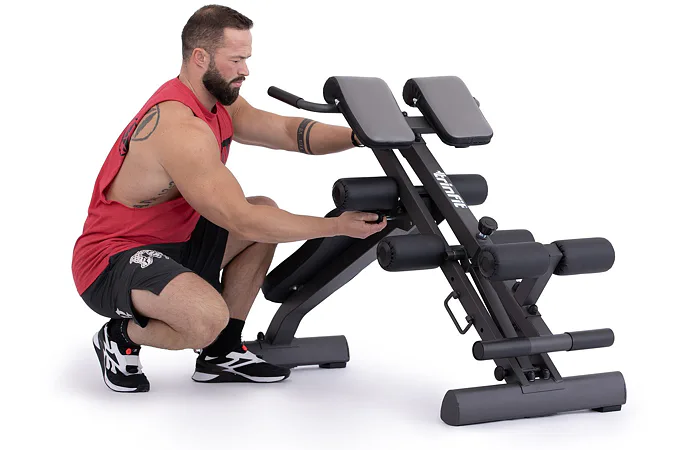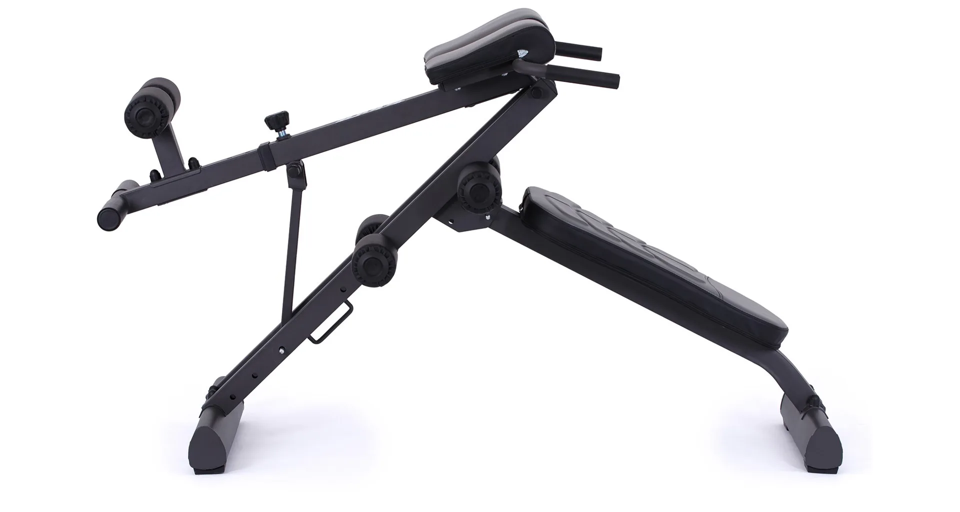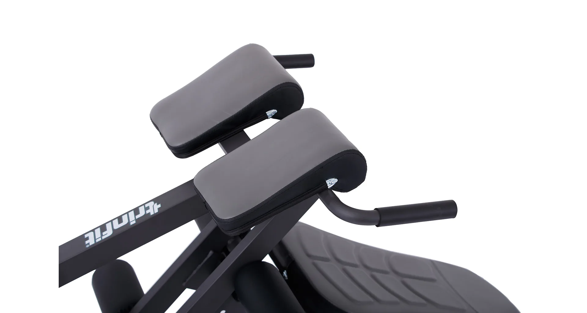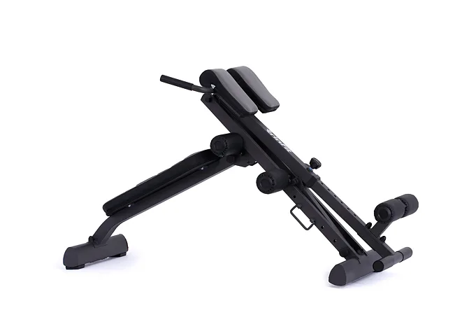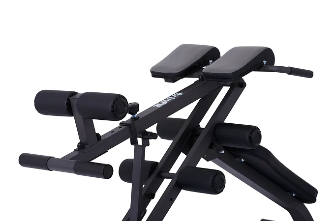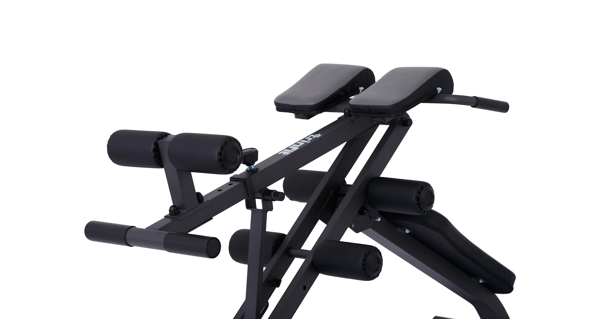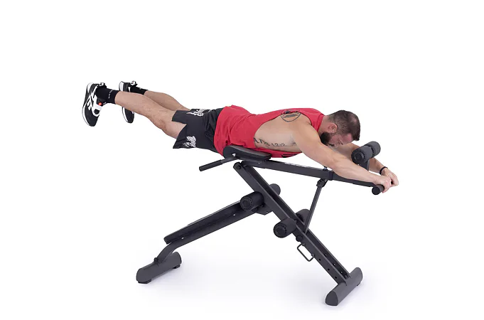 Hyperextenze je nastavitelná do různých úhlů, což umožňuje individuálně střídat cviky v širokém spektru zátěží. Lavice je navíc opatřena madly pro větší bezpečnost a velkým množstvím nastavitelných opěrných pěnových válců.
