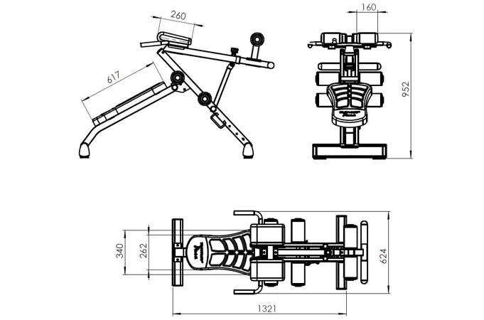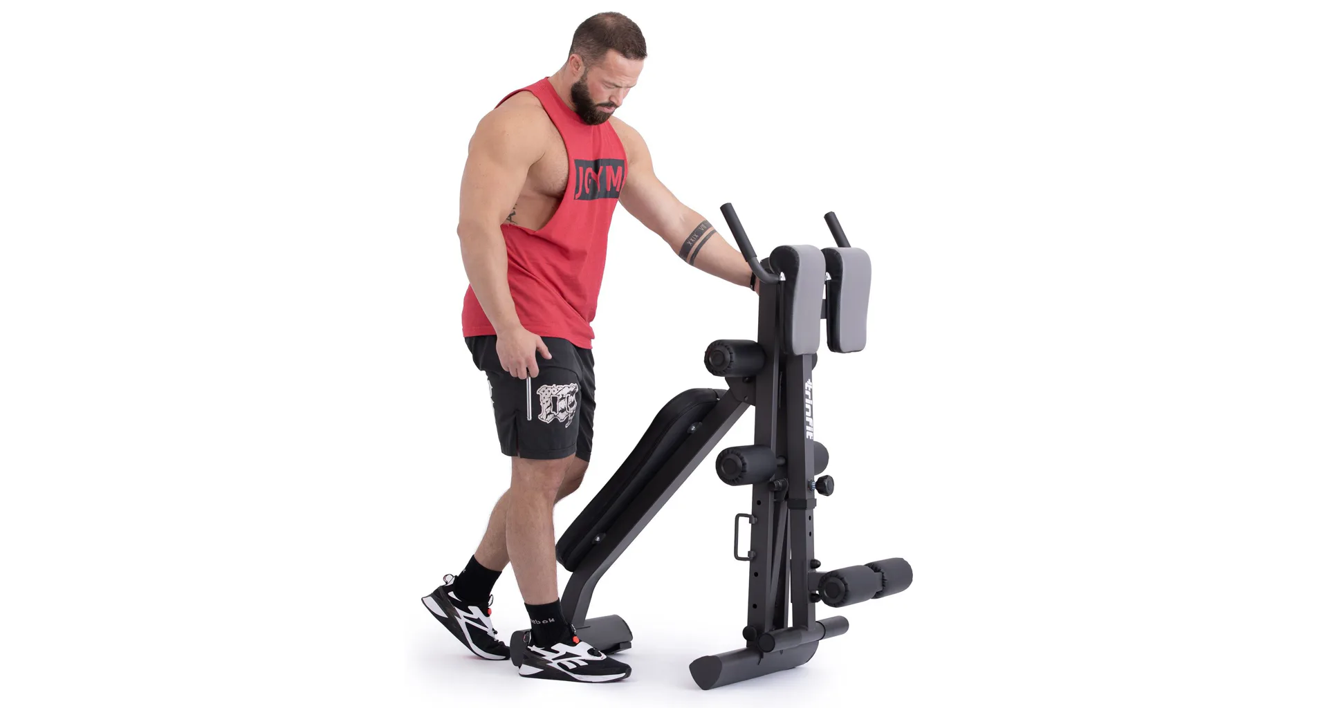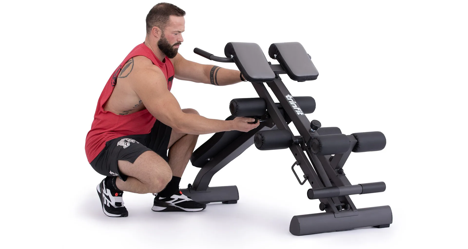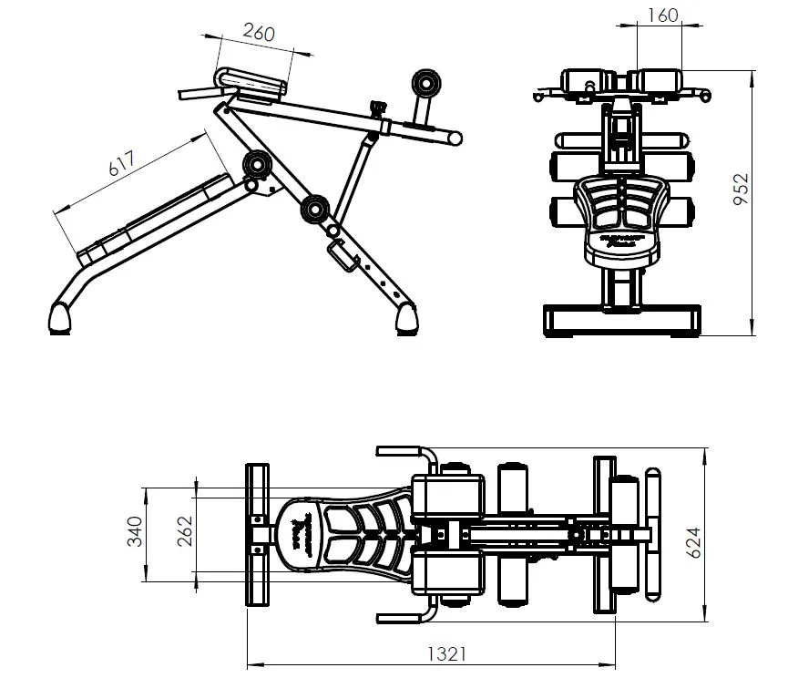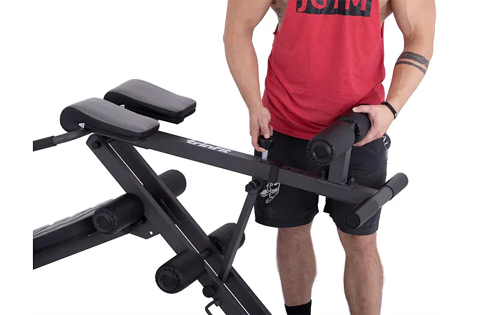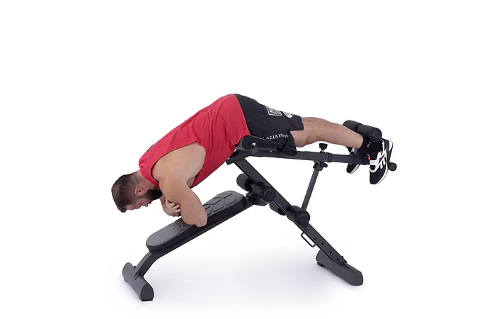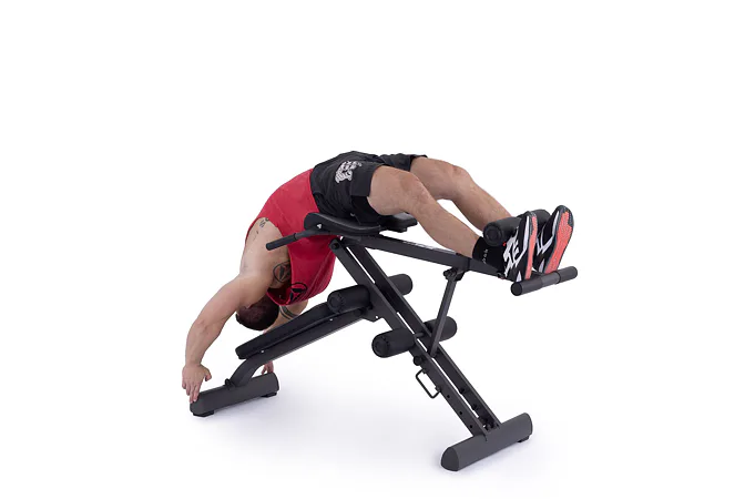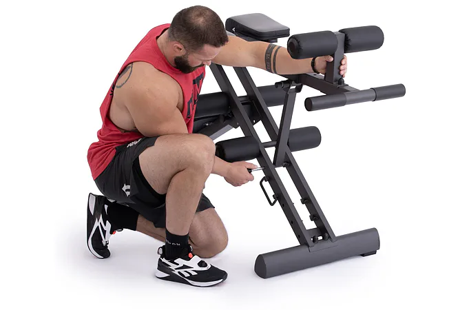 Hyperextenze je nastavitelná do různých úhlů, což umožňuje individuálně střídat cviky v širokém spektru zátěží. Lavice je navíc opatřena madly pro větší bezpečnost a velkým množstvím nastavitelných opěrných pěnových válců.