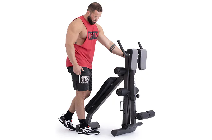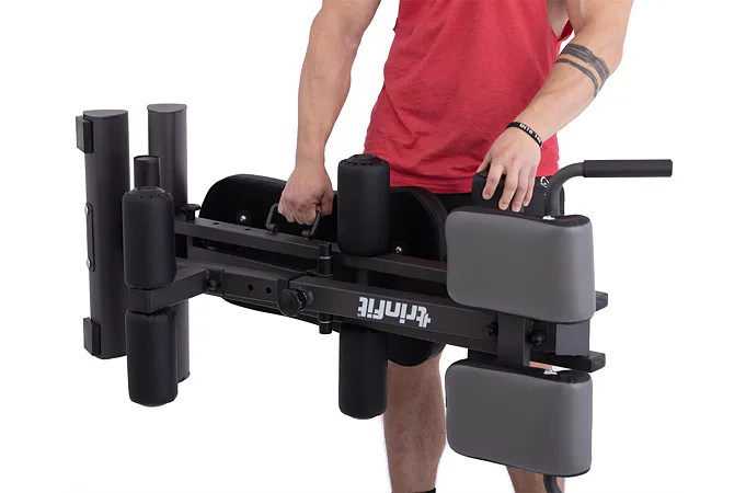 TRINFIT AB/back bench TZ5 je kombinací tří posilovacích lavic v jednom, a to hyperextenzi (vzpřimovače), šikmou lavicí na břišní svaly a šikmé břišní svaly, a navíc disponuje možností odcvičit izolovaně bicepsový sval. Výhodou je snadná složitelnost lavice, což ocení hlavně ti s domácí posilovnou.