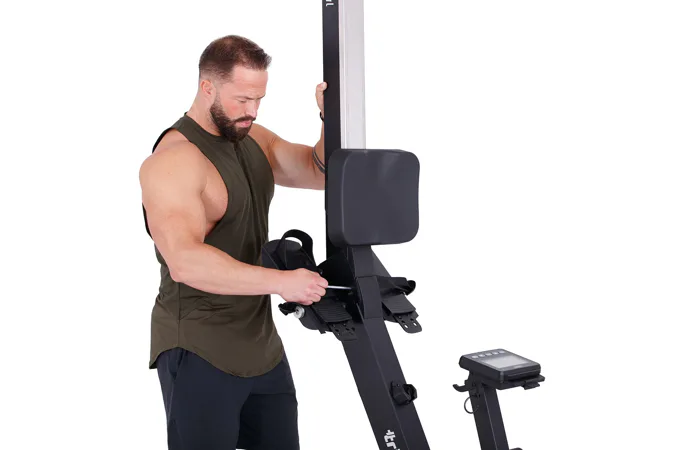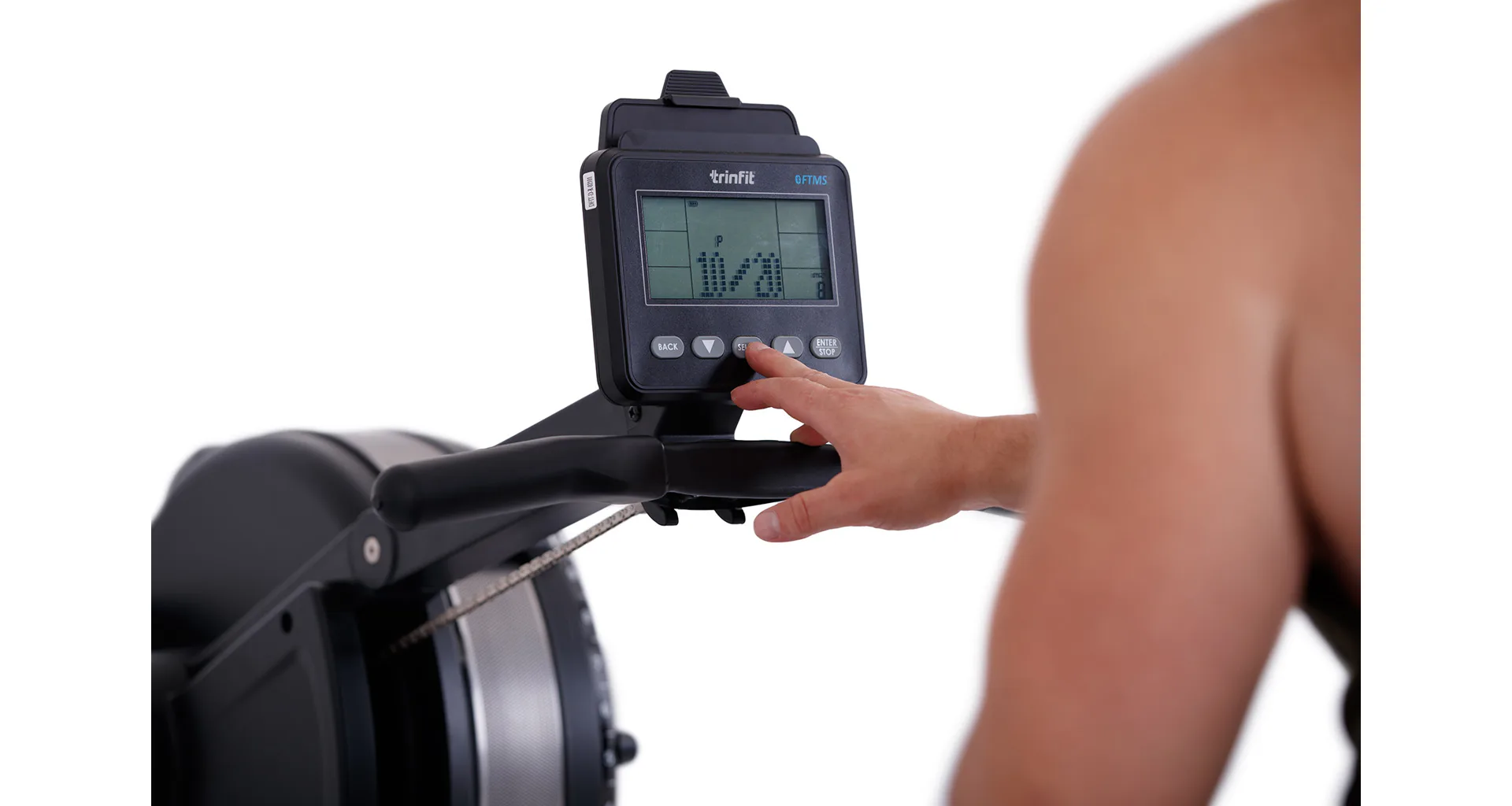 TRINFIT Air Rower Pro má robustní ocelový rám pro maximální zátěž s minimální potřebou na údržbu. Veslovací trenažér má dostatečný rozsah zátěže pro začátečníky i profesionálně zaměřené veslaře. Regulaci odporu a proudění vzduchu můžete nastavit v deseti úrovních. Sedlo TRINFIT Air Rower Pro je vybaveno extra polstrovanou pěnou s vysokou hustotou, ergonomicky navrženou pro maximální pohodlí při veslování.