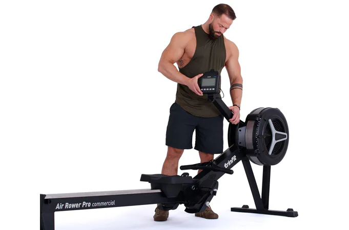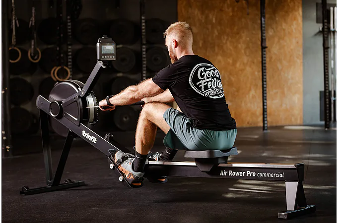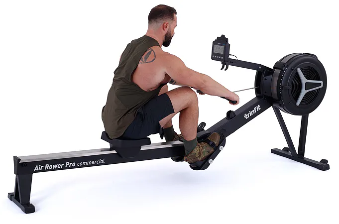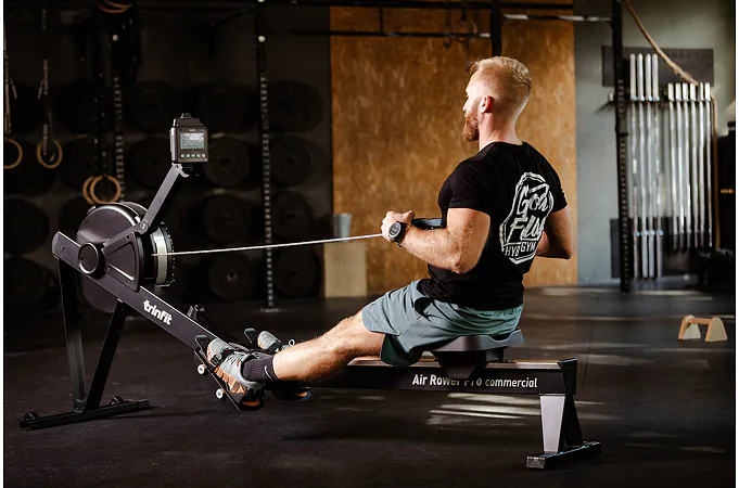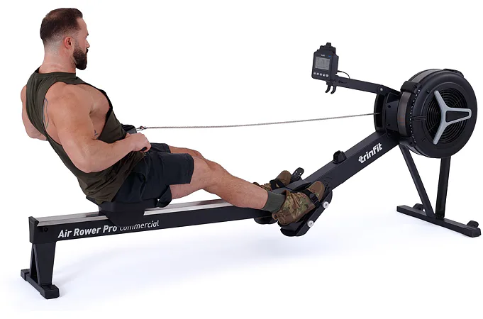 Profesionální veslařský trenažér TRINFIT Air Rower Pro využívá pro regulaci zátěže odpor vzduchu, stroj poskytuje přirozený rozsah odporu, čímž adekvátně simuluje zátěž podobnou veslování ve vodě. Jedná se o profesionální veslařský trenažér využívaný špičkovímy sportovci, komerčními fitness centry i crossfitovými tělocvičnami.