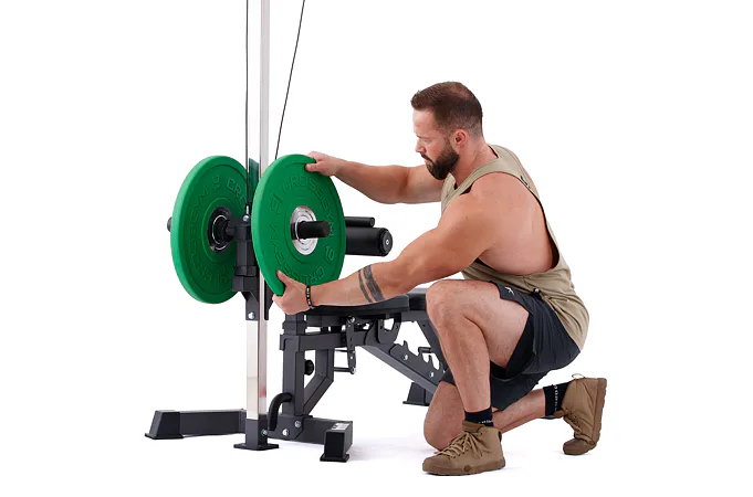 Závaží se na kladku nandává pomocí kotoučů o průměru 25 nebo 50 mm. Pokud tedy již doma máte kotouče různých druhů, nemusíte se bát, že by přišli vniveč. Díky volitelnému průměru, můžete použít takřka veškeré druhy kotoučů a precizně si nastavit závaží dle potřeb.