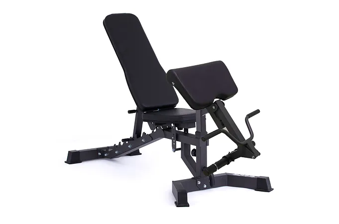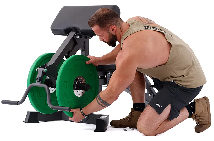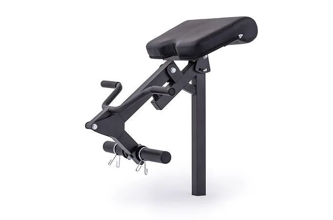 Součástí je adaptér biceps TRINFIT pro L5 Pro. Bicepsový adaptér je osazen vypolstrovanou deskou (modlitebníkem), který je nastavitelný do 3 úhlů s odolným čalouněním a měkčeným polstrováním pro komfortní trénink. Pod zmíněným modlitebníkem naleznete samotná madla s 2 nakládacími trny o průměru 25 nebo 50 mm. Můžete si tedy naložit váhu dle potřeb, klidně po půl kilogramech a postupně tak zvětšovat používanou zátěž.
