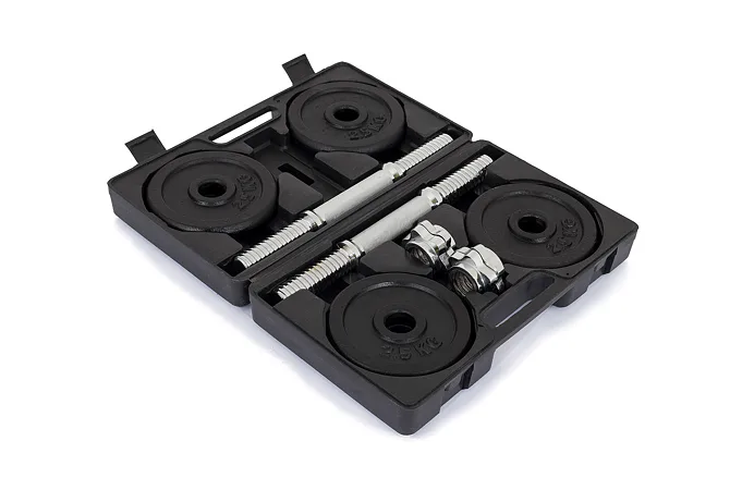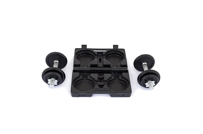 Sada dvou kvalitních jednoručních činek 2x10 kg TRINFIT v praktickém kufříku umožňuje snadnou manipulaci s činkami. Je vyrobena z vysoce kvalitních materiálů. Každá činka umožňuje nastavení libovolné váhy v rozsahu cca 2,3 až 10 kg. Činka je vybavena závitovými uzávěry pro maximální komfort a bezpečnost.