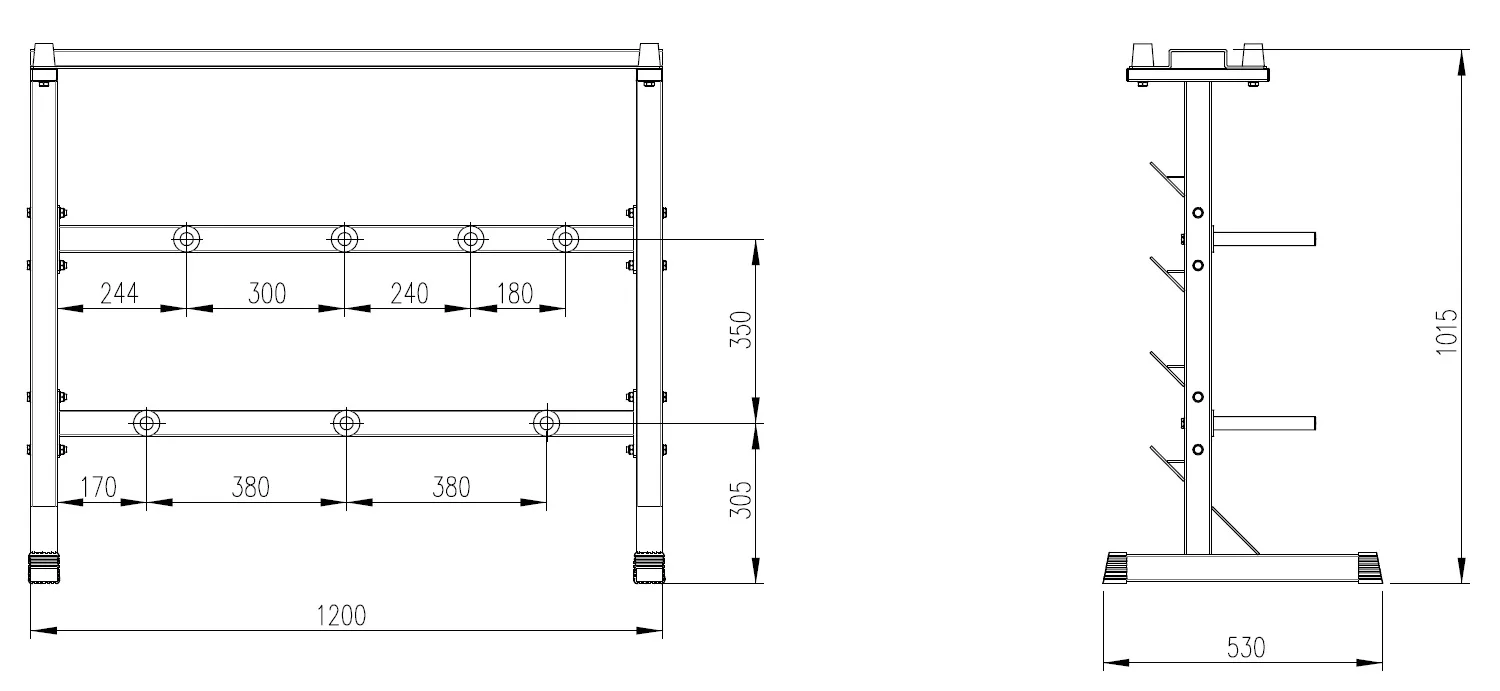 Odkládací stojan na činky, kotouče a osy TRINFIT DUMBBELL RACK je dokonalé řešení pro uložení vašich činek. Stojan umožňuje bezpečné uložení jednoručních činek, kotoučů a velkých činkových os. Masivní rámová konstrukce z jeklu 50x50x1,5 mm a kvalitní povrchová úprava vypalovaným lakem zaručují dlouhou životnost stojanu. Díky kvalitnímu zpracování a materiálům lze stojan využít v domácím i komerčním prostředí.