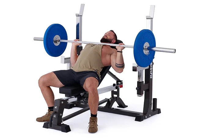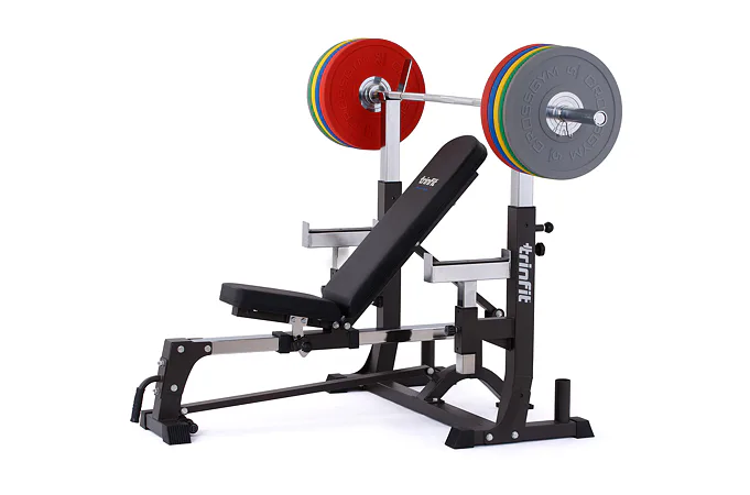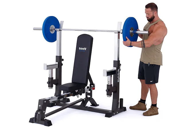 TRINFIT F7 Pro Benchpress je robustní lavice určená pro trénink tlakových cviků (benchpress, šikmý benchpress, tlaky na ramena s velkou činkou apod.). Využití TRINFIT F7 Pro naleznete především v klubových prostorech, hotelových posilovnách a posilovnách pro záchranné složky.