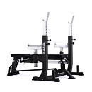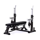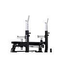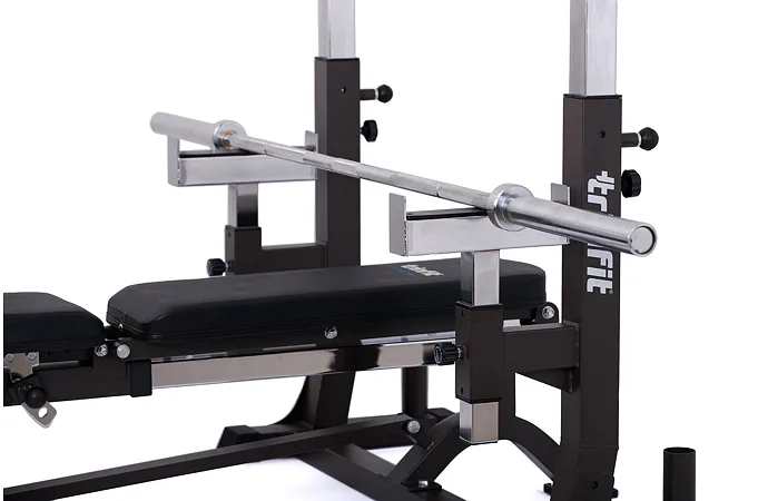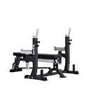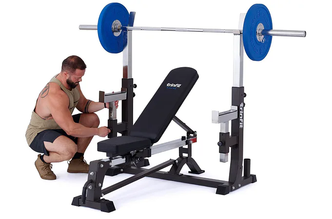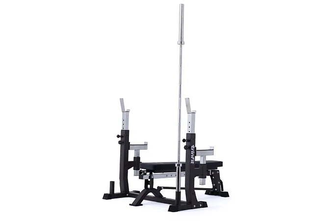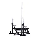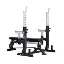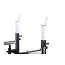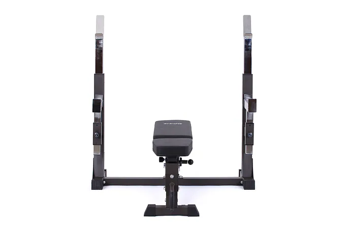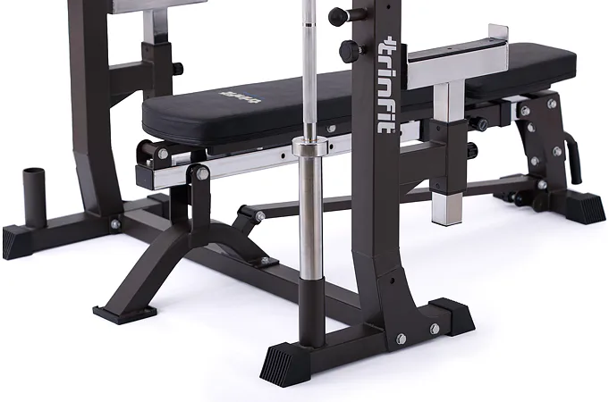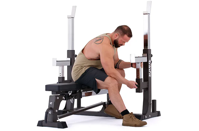 Možnost nastavení stojanu na osu a bezpečnostních dorazů zajišťuje vysokou variabilitu při tréninku, díky čemuž si na lavici zacvičí opravdu každý. Nastavení výšky stojanů a dorazů se provádí jednoduše pomocí kolíku s pružinkou. Pro uvolnění kolík táhnete směrem ven a pro opětovné zajištění kolík pustíte, ten pak zajede do příslušného otvoru a tím je stojan zajištěný. Nastavení je tedy opravdu snadné a bleskové.