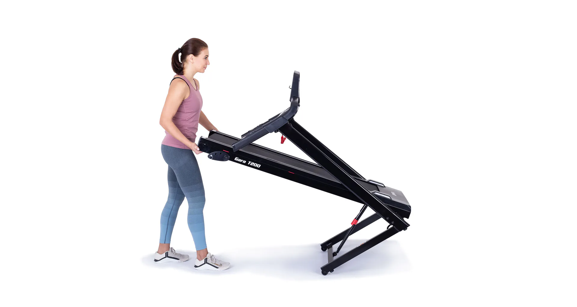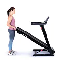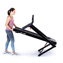 Pokud běžecký pás zrovna nepoužíváte, můžete jej jednoduše sklopit a ušetřit tak až 60% místa. Sklopení a manipulaci s pásem usnadňují i transportní kolečka.