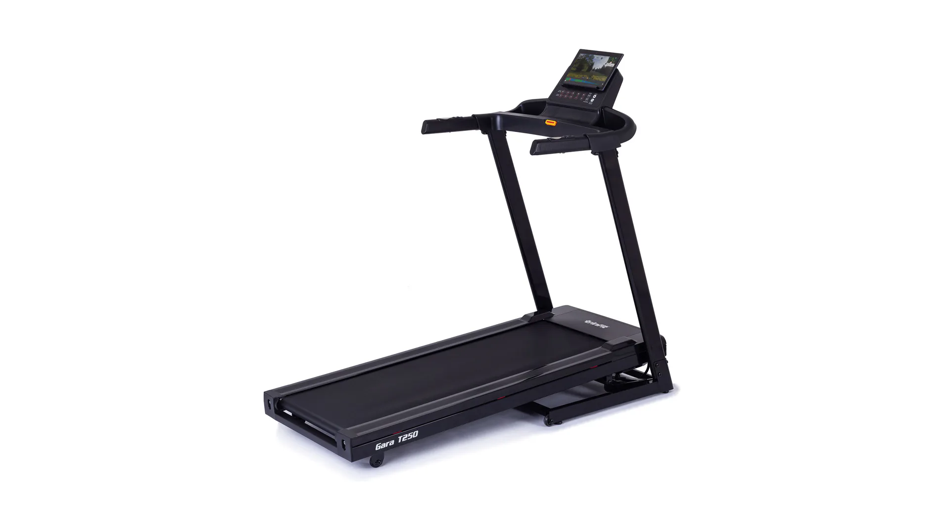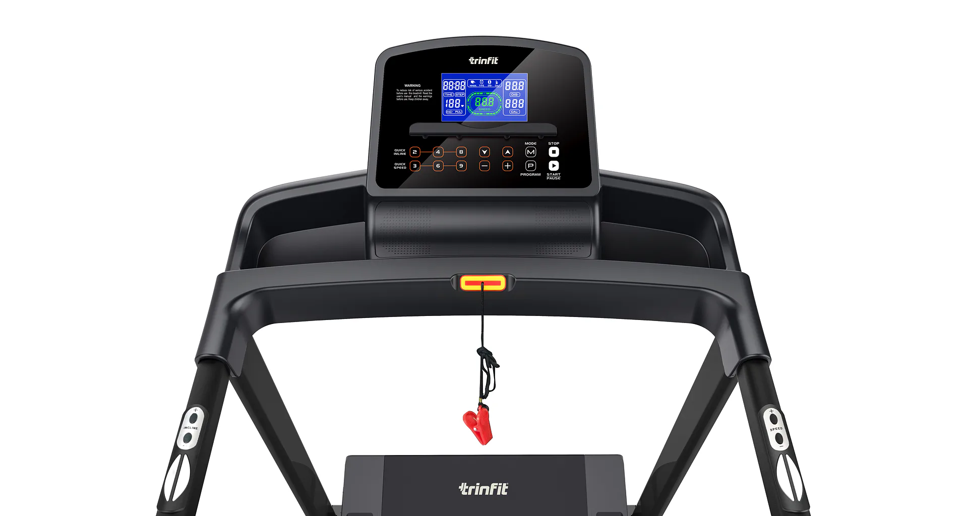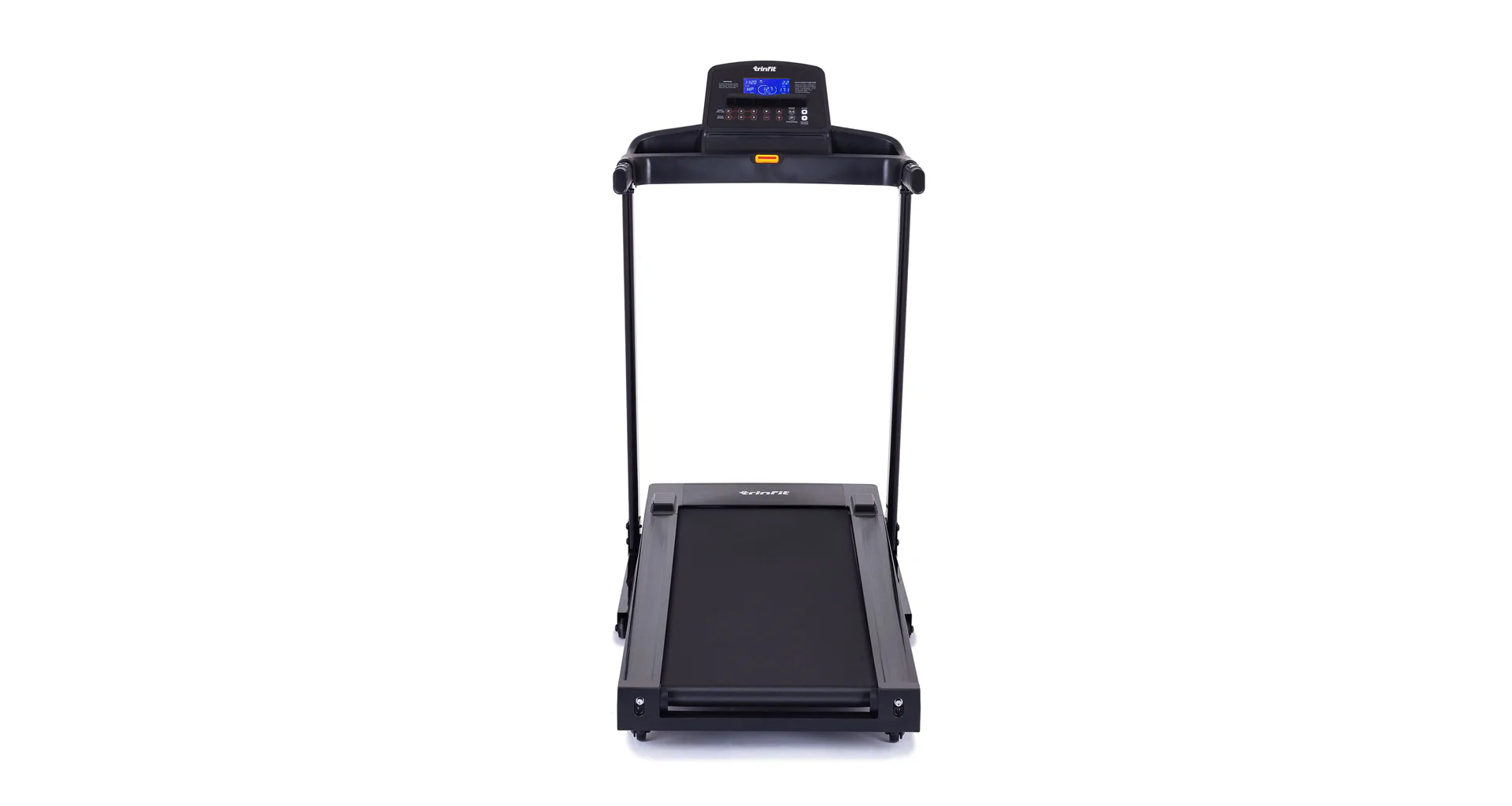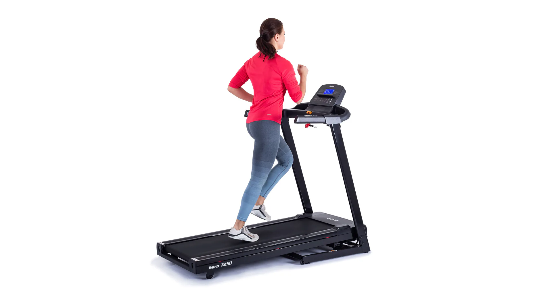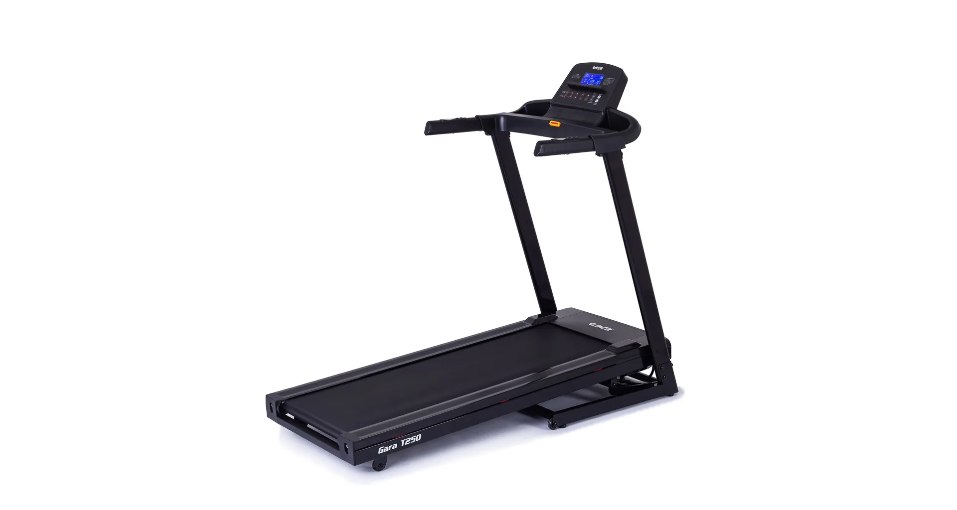 TRINFIT Gara T250 nabízí přehledný, podsvětlený LCD displej s bohatou programovou nabídkou pro efektivní a zábavný trénink. Umožní vám sledovat váš trénink v reálném čase pomocí dat monitorujících vaši rychlost, čas, vzdálenost, spálené kalorie a srdeční frekvenci.