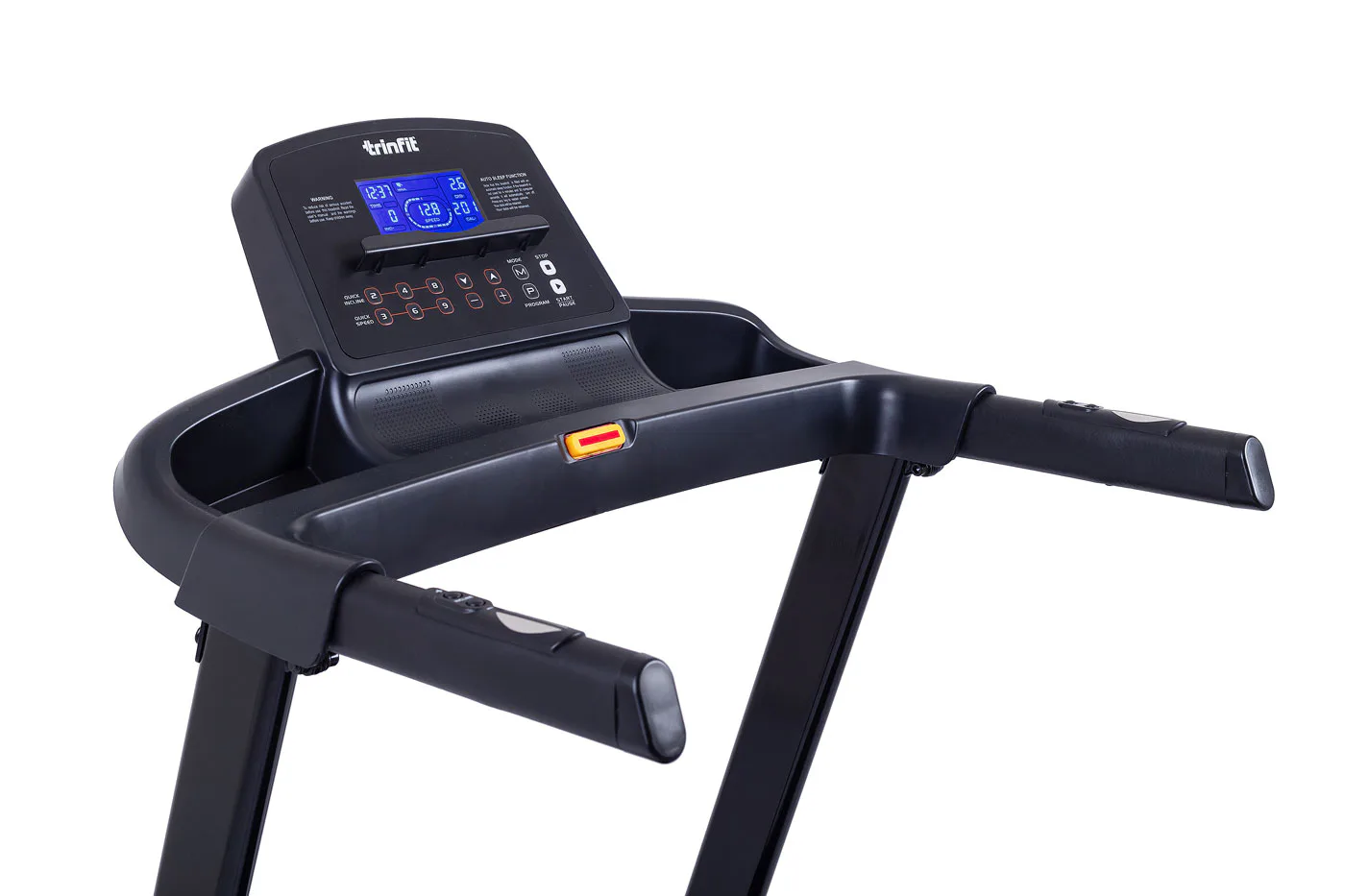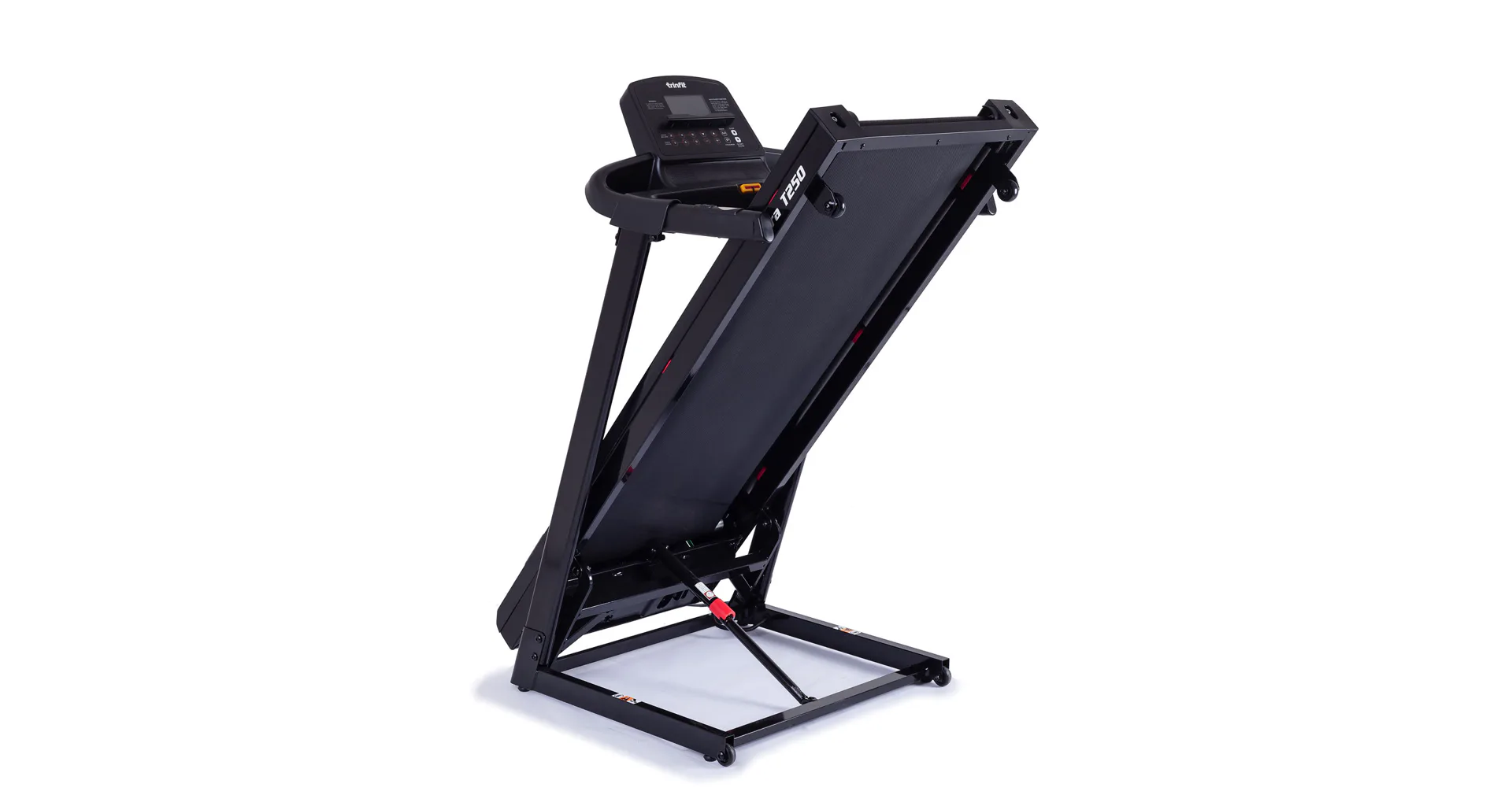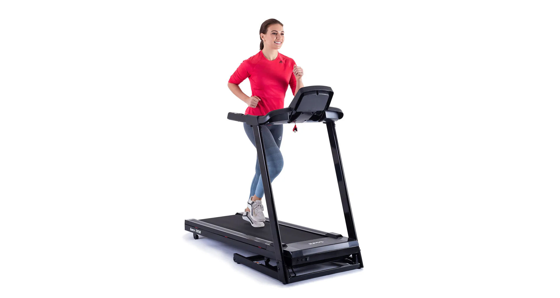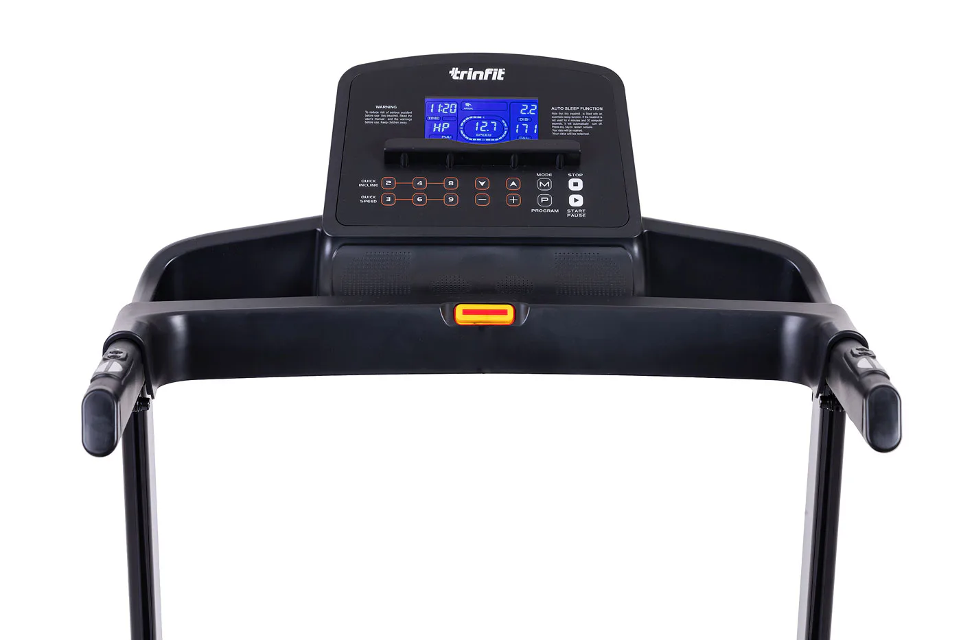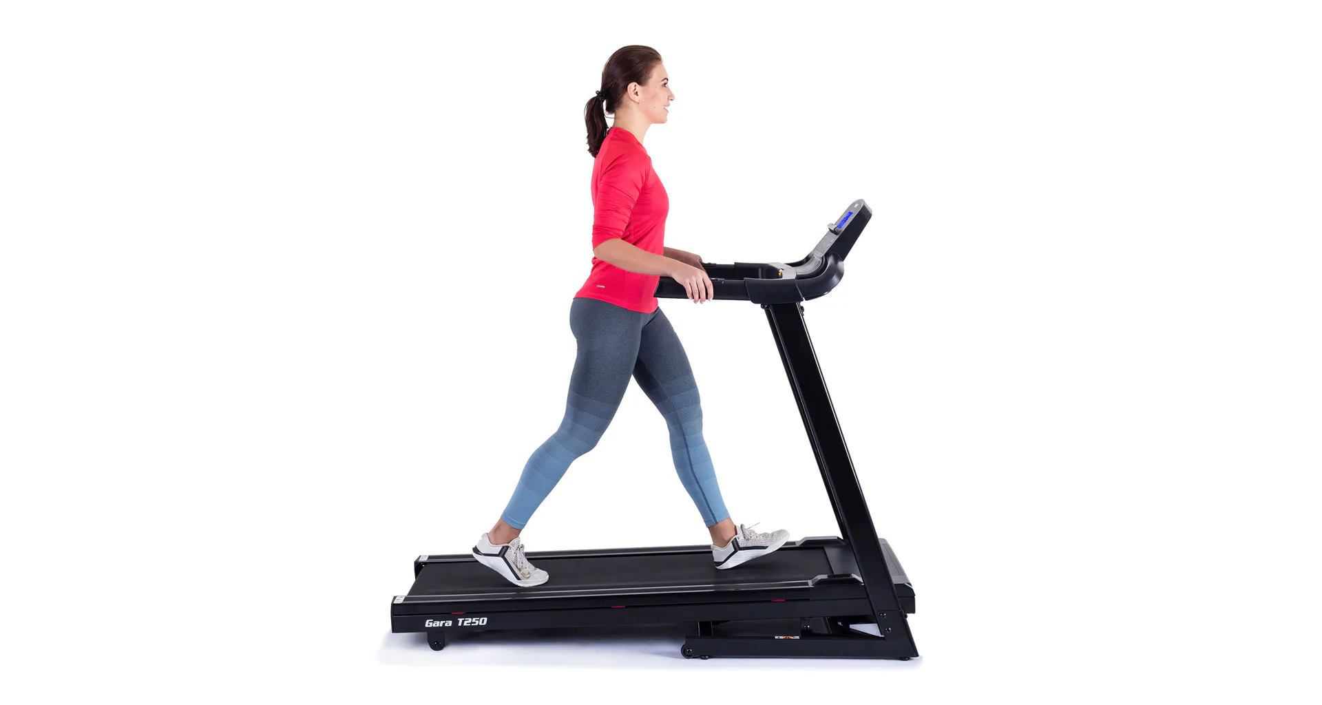 TRINFIT Gara T250 nabízí přehledný, podsvětlený LCD displej s bohatou programovou nabídkou pro efektivní a zábavný trénink. Umožní vám sledovat váš trénink v reálném čase pomocí dat monitorujících vaši rychlost, čas, vzdálenost, spálené kalorie a srdeční frekvenci.