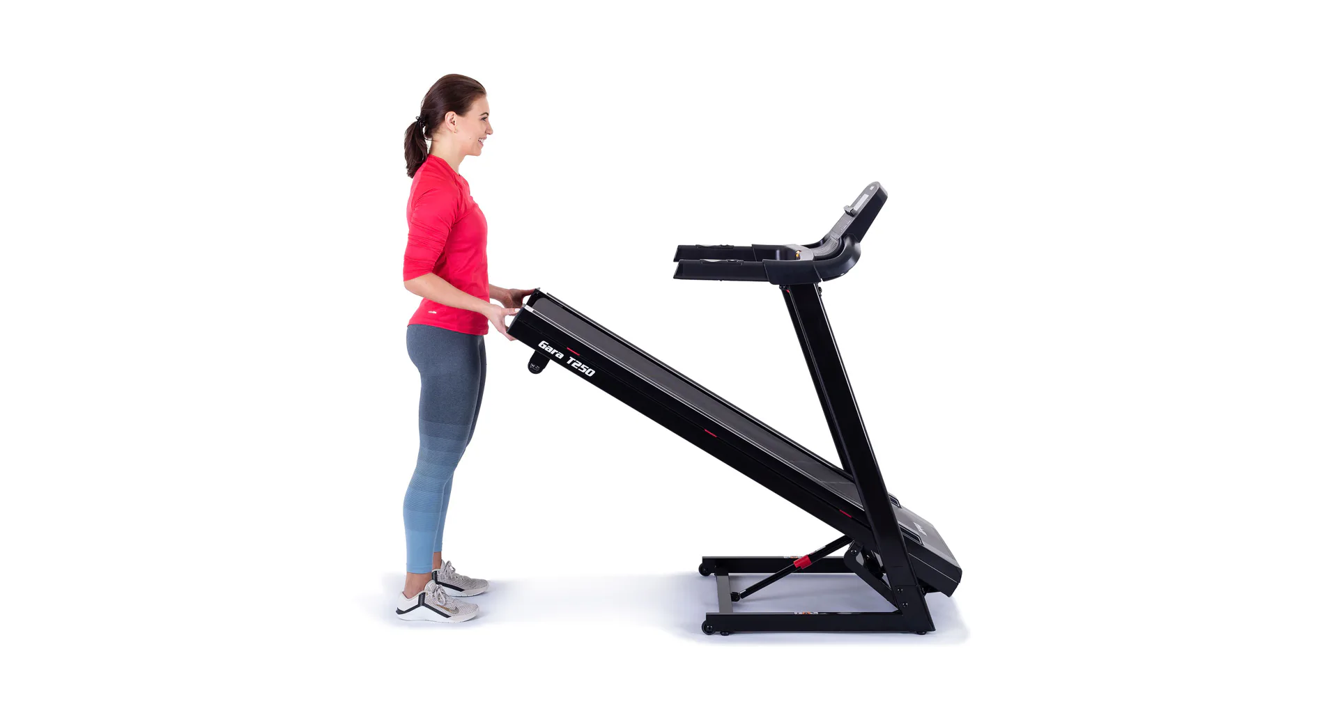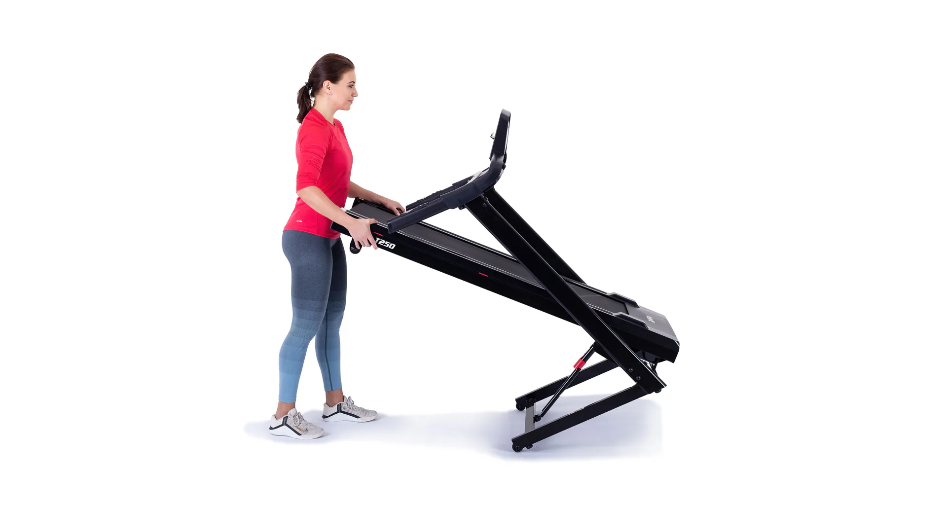 Pokud běžecký pás zrovna nepoužíváte, můžete jej jednoduše sklopit a ušetřit tak až 60% místa. Sklopení a manipulaci s pásem usnadňují i transportní kolečka.
