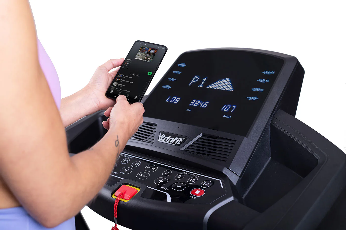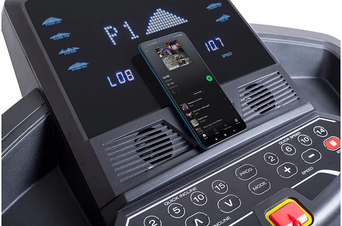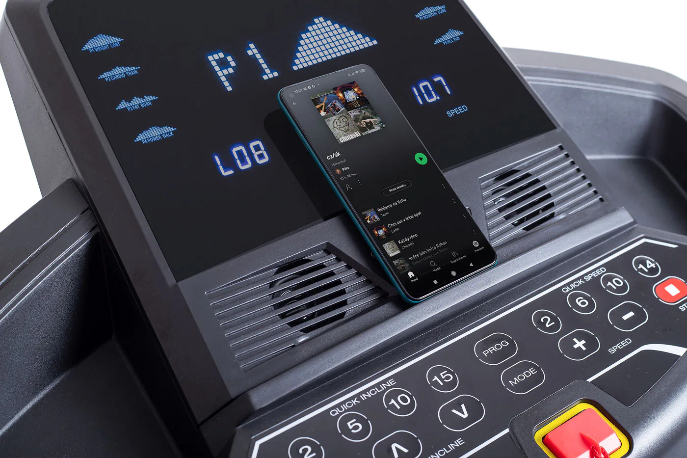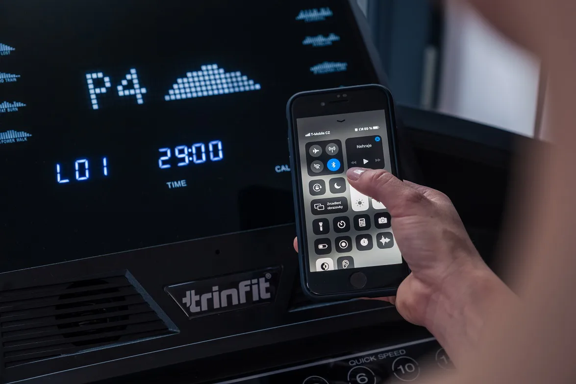 Díky funkci Bluetooth je možné běžecký pás spárovat s chytrými zařízeními pro poslech hudby ze zabudovaných reproduktorů a také můžete využívat tréninkové aplikace.