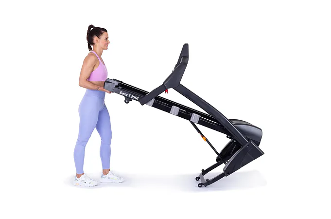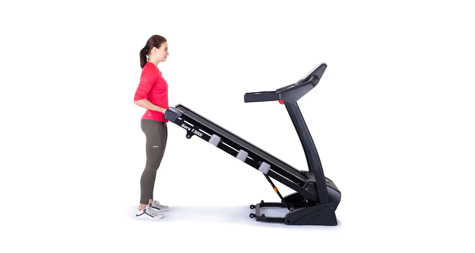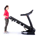 Pokud běžecký pás zrovna nepoužíváte, můžete jej jednoduše sklopit a ušetřit tak až 60% místa. Sklopení a manipulaci s pásem usnadňují i transportní kolečka.