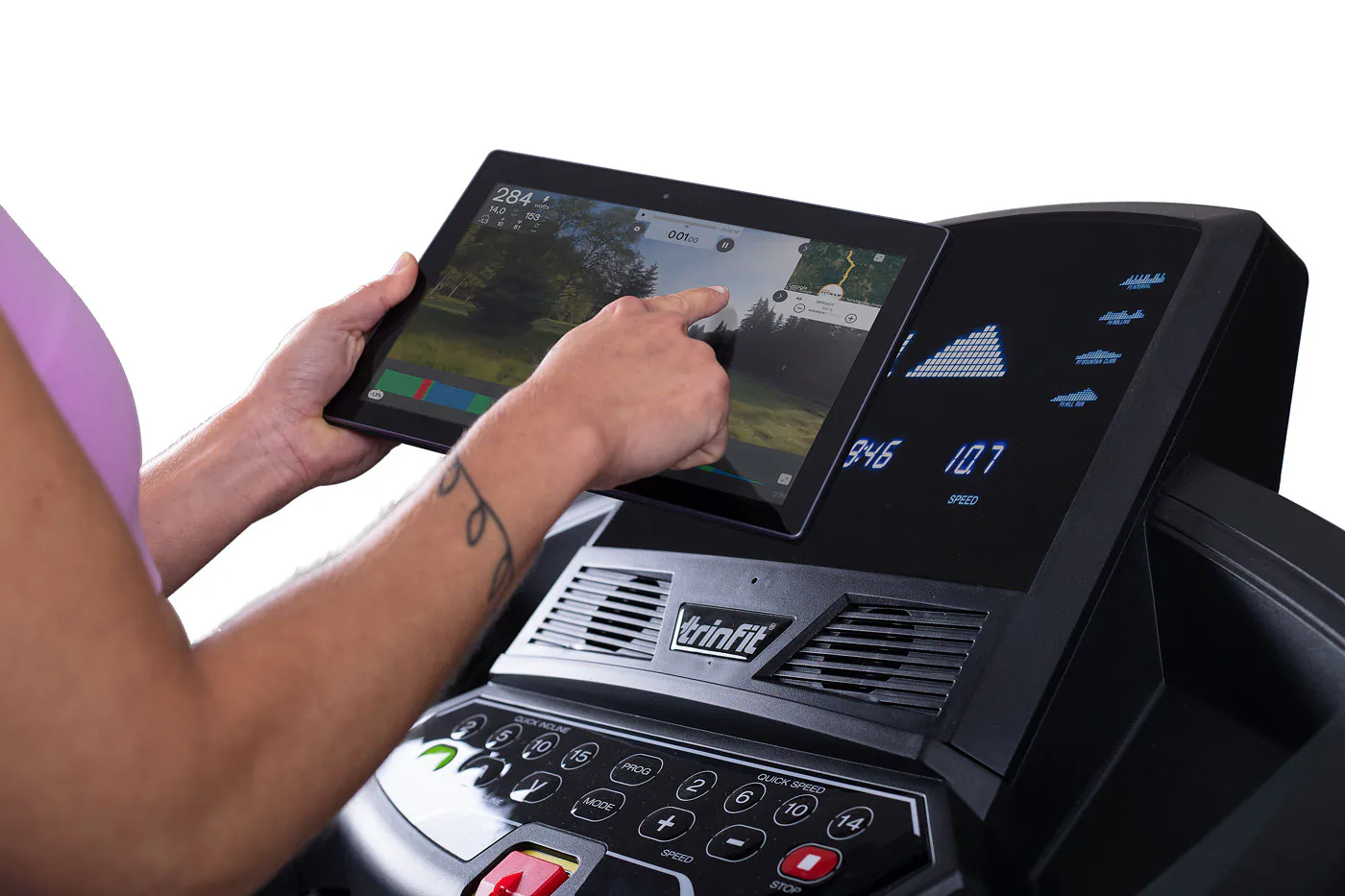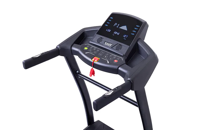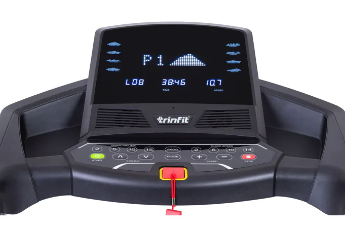 TRINFIT Gara T300i nabízí velký, přehledný a podsvětlený LCD displej s bohatou programovou nabídkou pro efektivní a zábavný trénink. Umožní vám sledovat váš trénink v reálném čase pomocí dat monitorujících vaši rychlost, čas, vzdálenost, spálené kalorie a srdeční frekvenci a využít řadu tréninkových programů, které si můžete nastavit dle tepové frekvence či dle jiných parametrů.